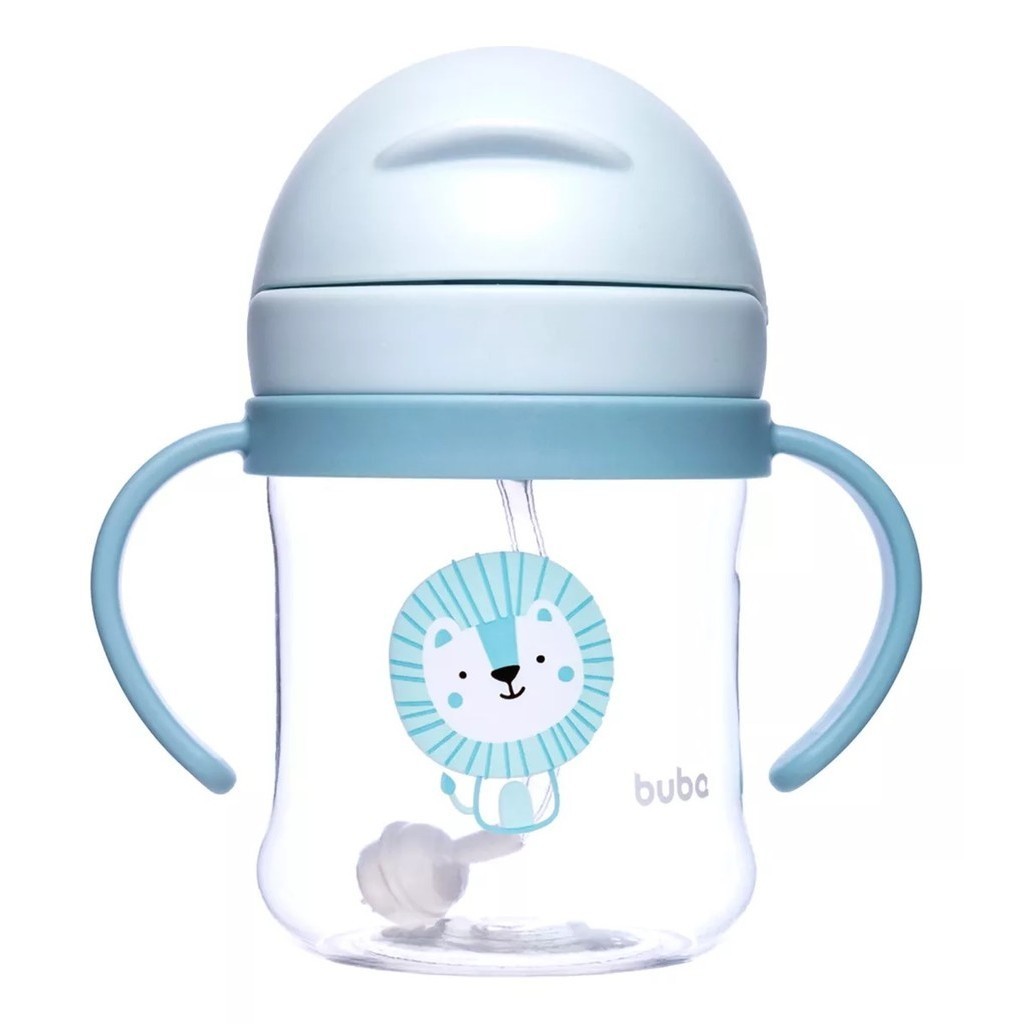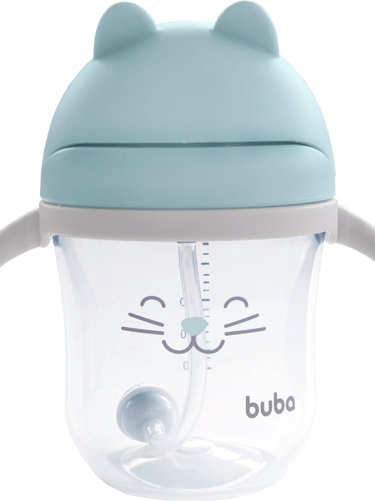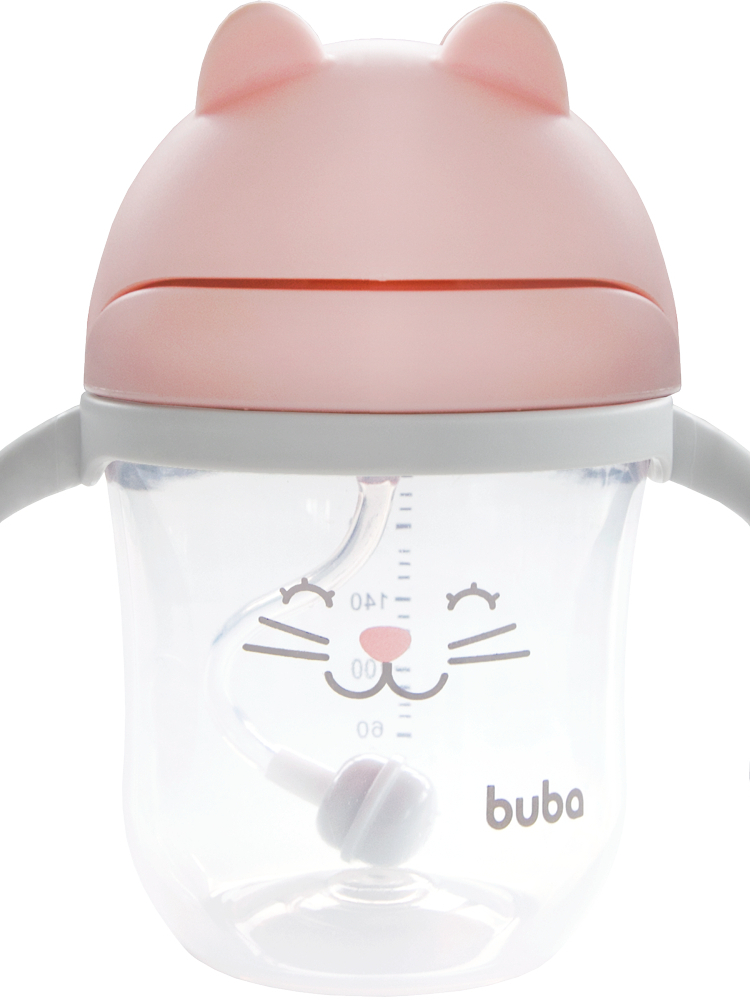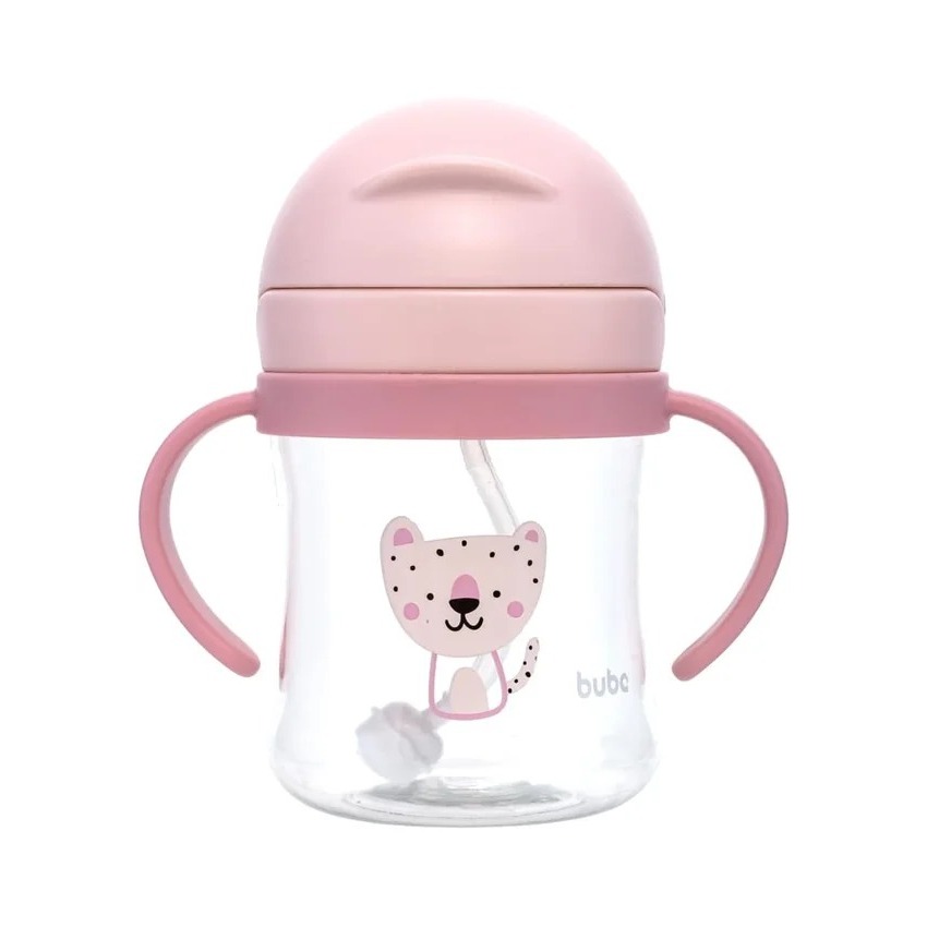Copo Infantil Bebê Gatinho Anti-ingestão de Ar com Canudo em Silicone com Alça Buba rosa azul menino menina