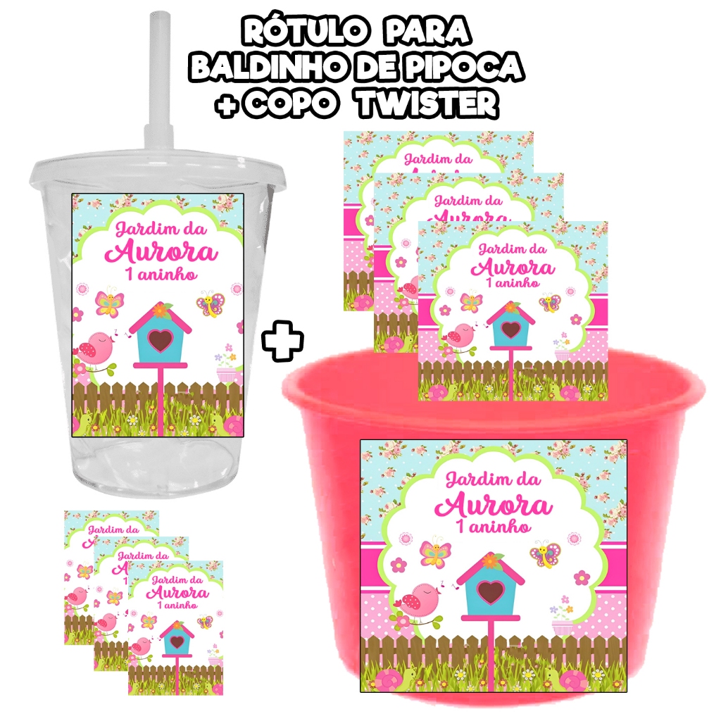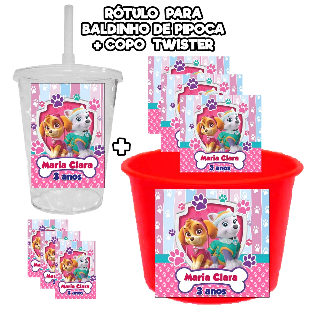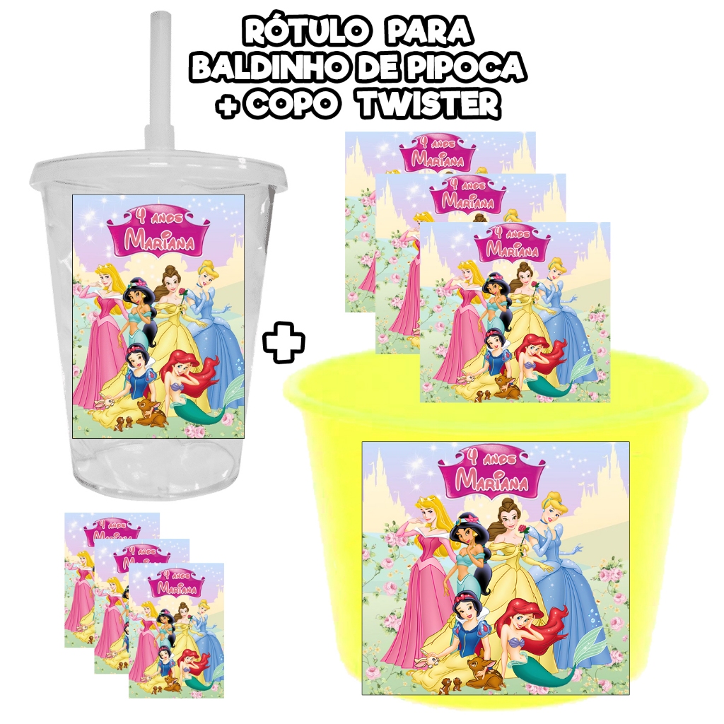 15 KIT RÓTULOS ADESIVOS PARA BALDINHO PIPOCA + 15 COPO TWISTER TOTALMENTE PERSONALIZADOS AUTOCOLANTE