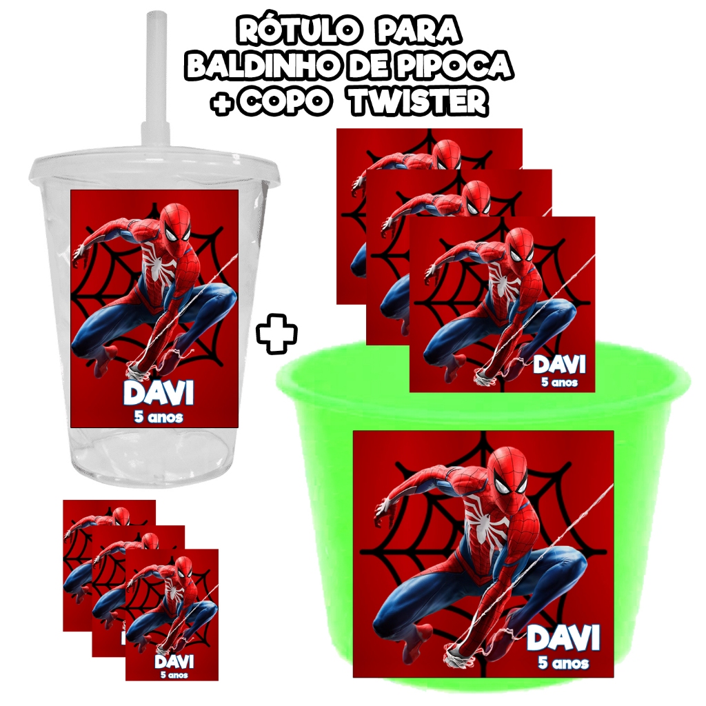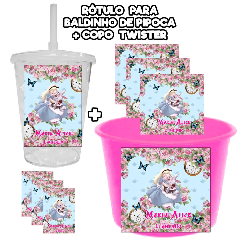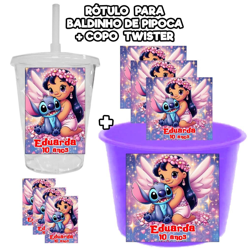 15 KIT RÓTULOS ADESIVOS PARA BALDINHO PIPOCA + 15 COPO TWISTER TOTALMENTE PERSONALIZADOS AUTOCOLANTE