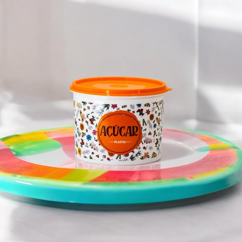Pote Porta Mantimento Açúcar Decorado Floral Resistente Decorativo