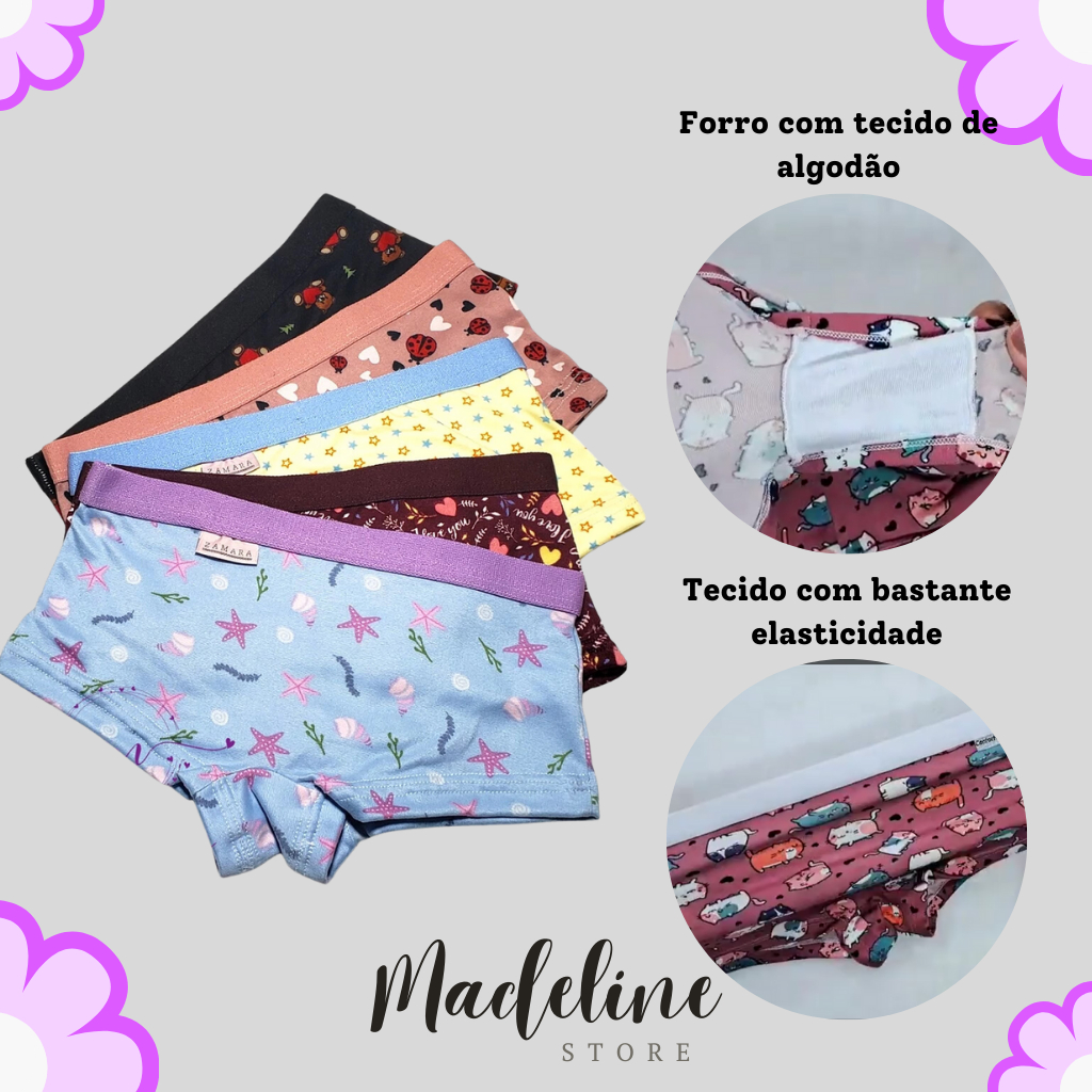 Kit 5 Calcinha Infantil Box Estampada Shortinho Menina