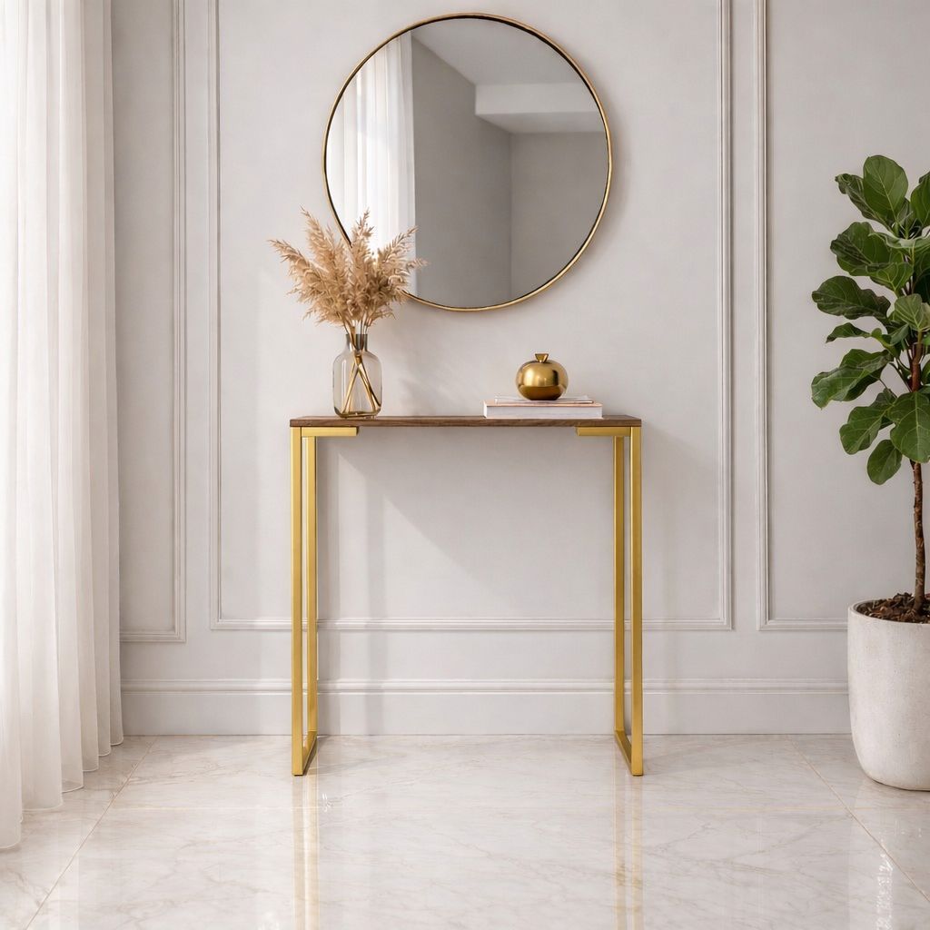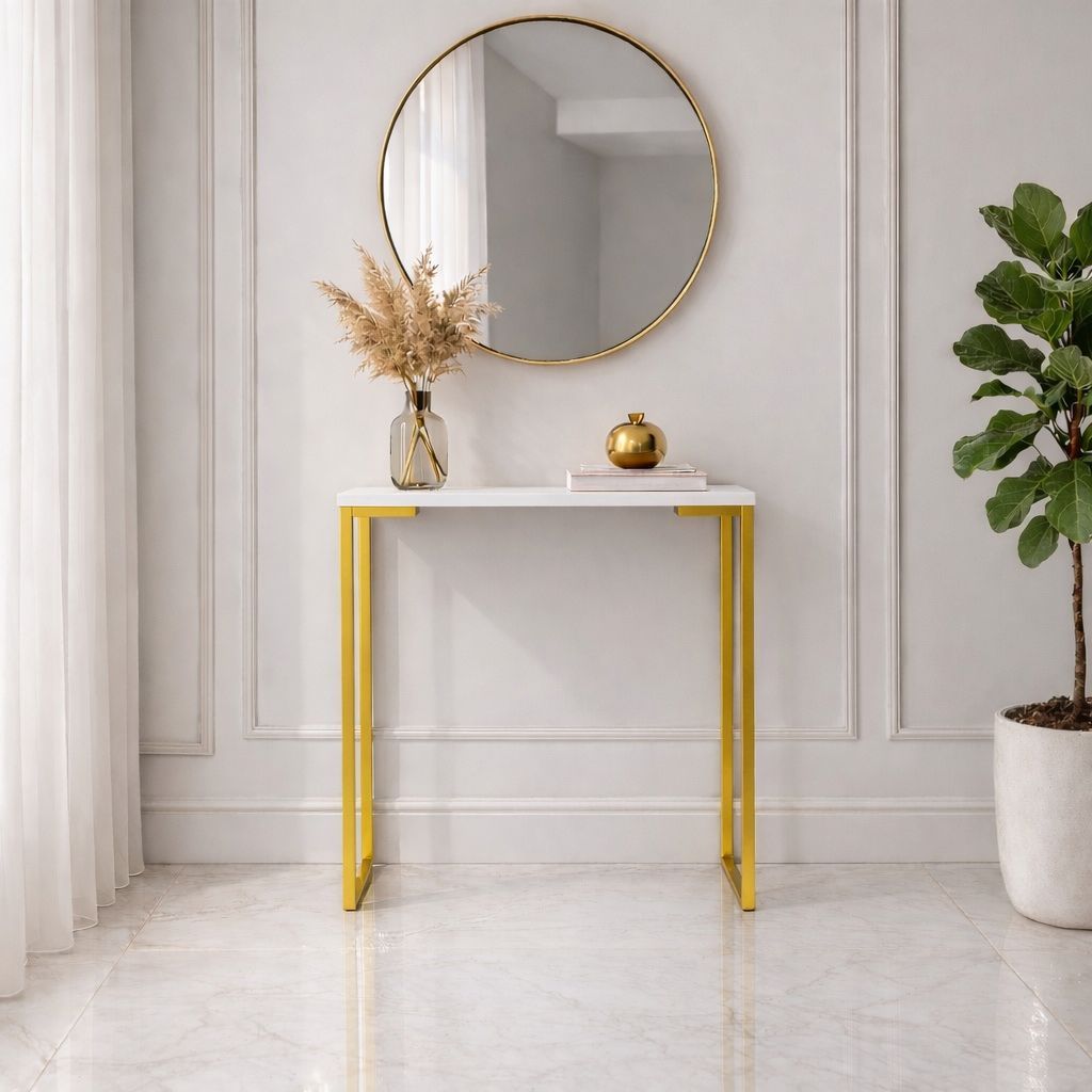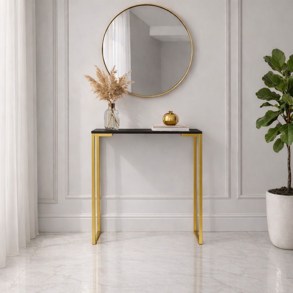 Aparador de Sala Estilo Industrial Mesa Buffet Balcão Pé Dourado Elegante 68X30X76