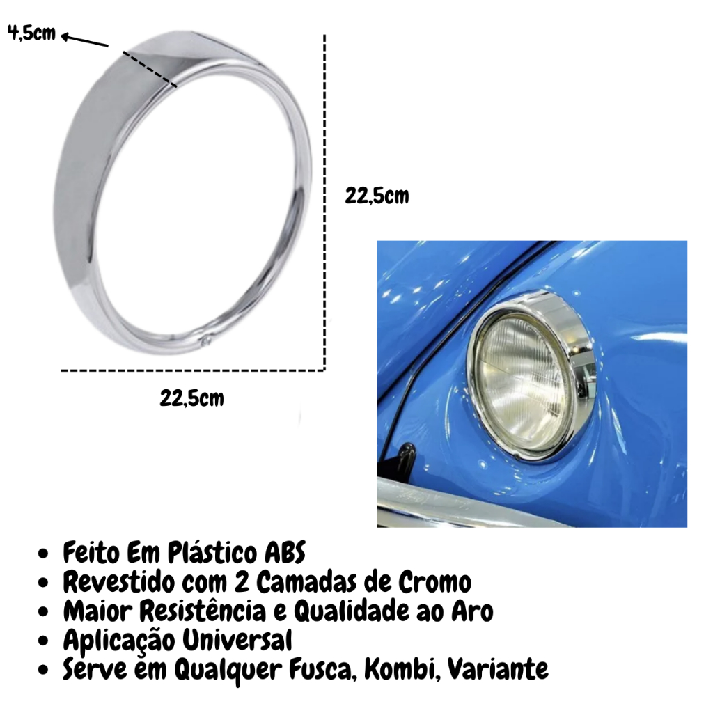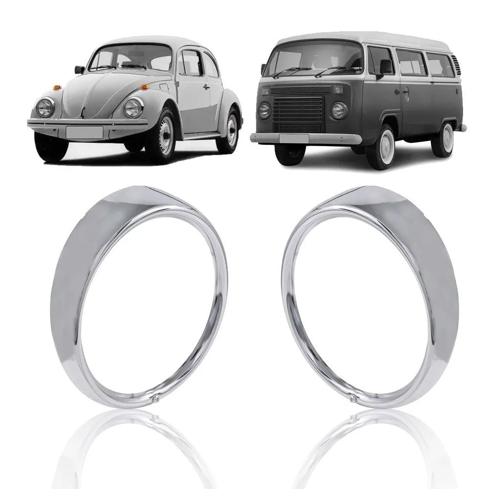 Par Aro Moldura Farol Cromado e Preto Fusca Kombi e Variante Aplicação Universal