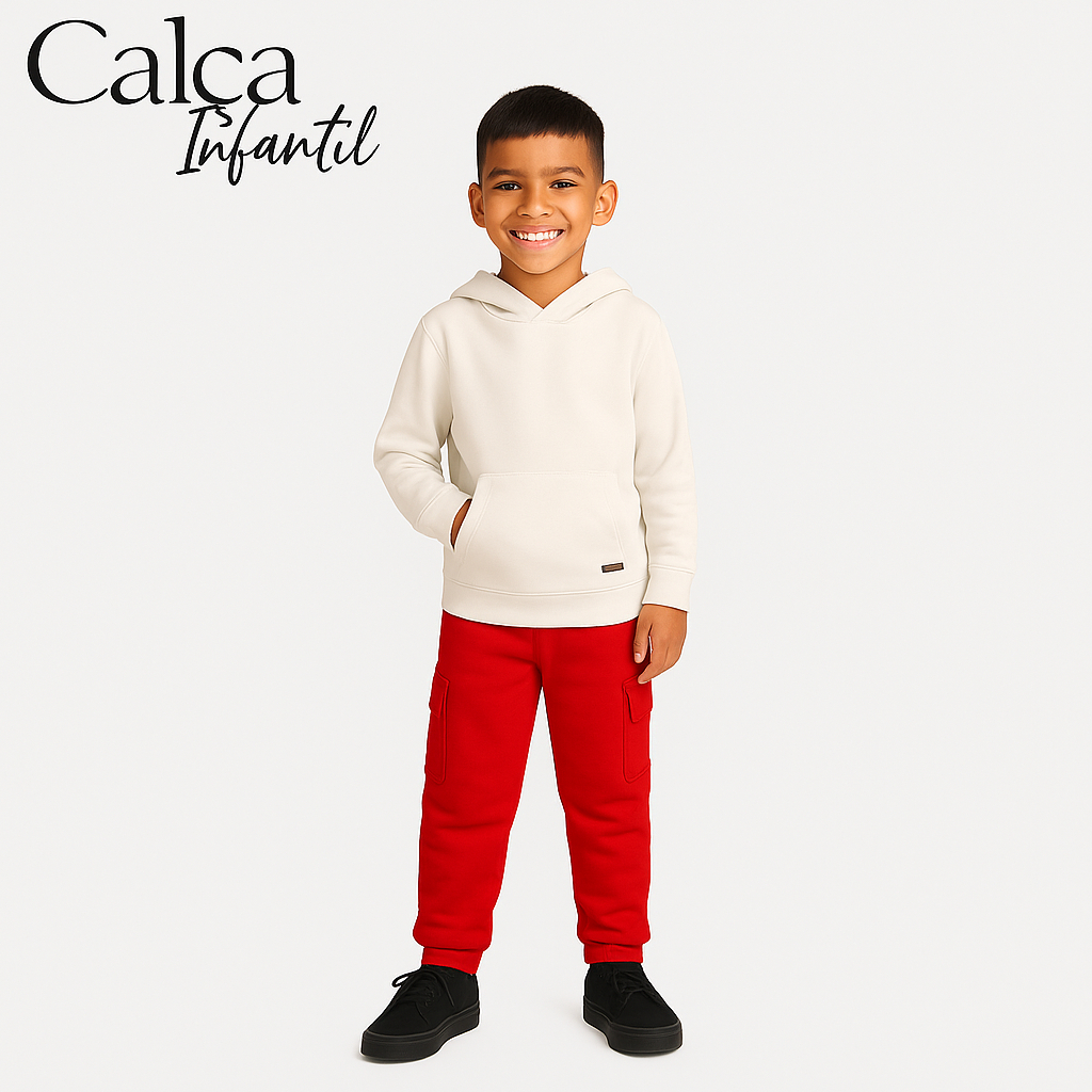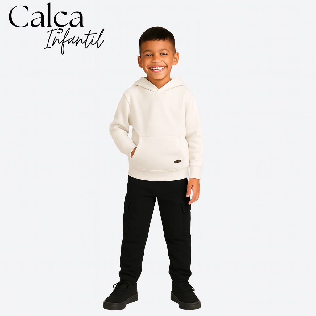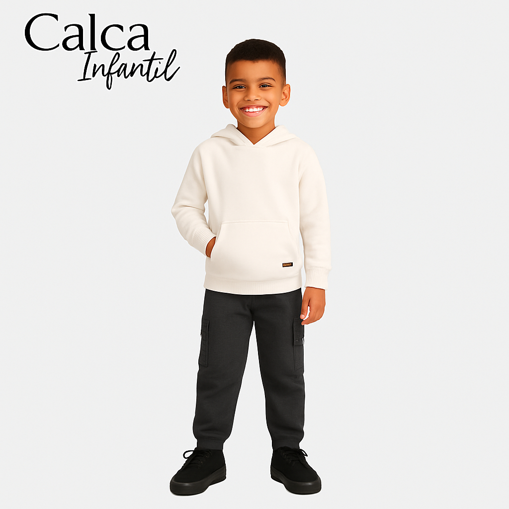 Calça Cargo Moletom menino estilo tendência