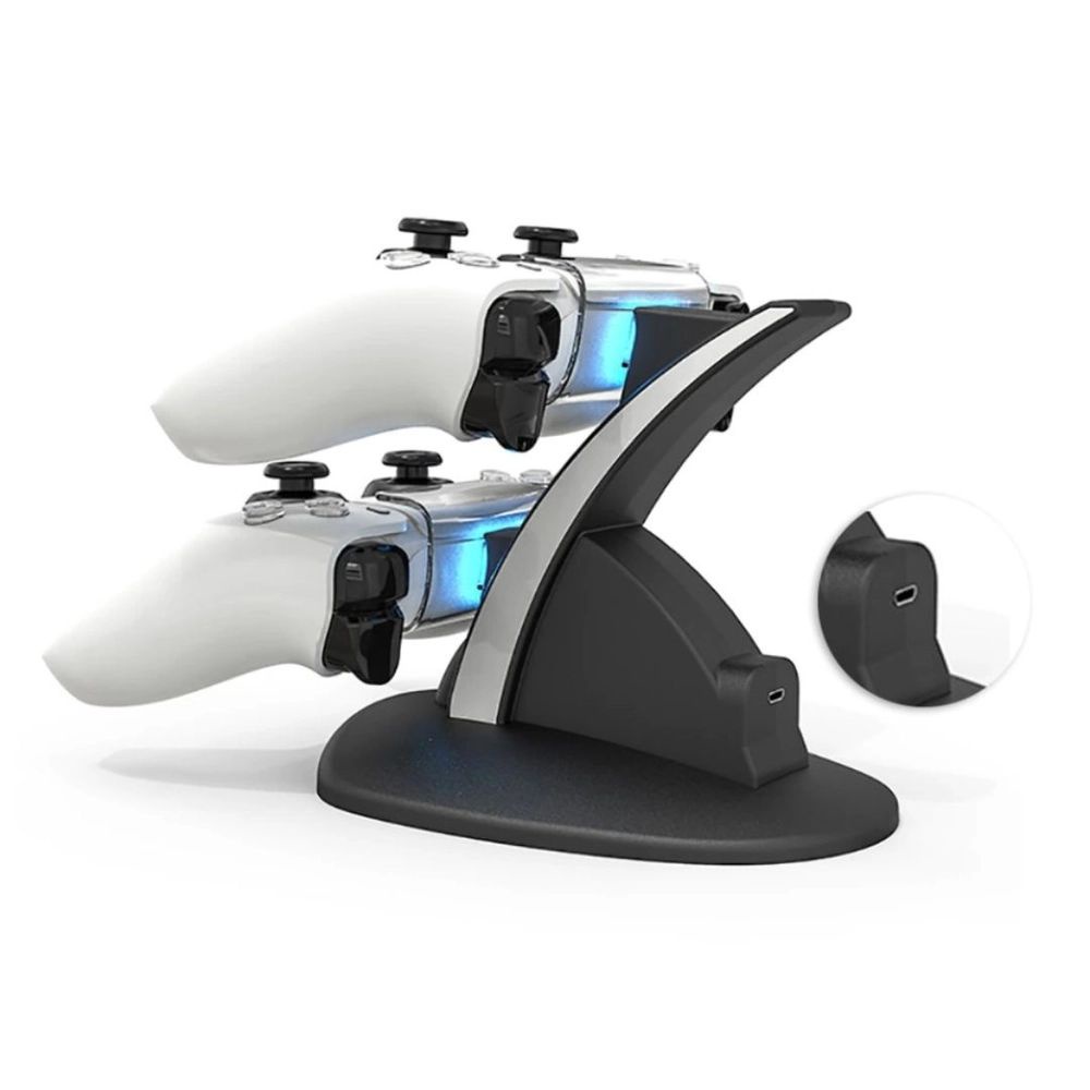 Suporte Carregador Para Ps5 Branco Com Led Premium