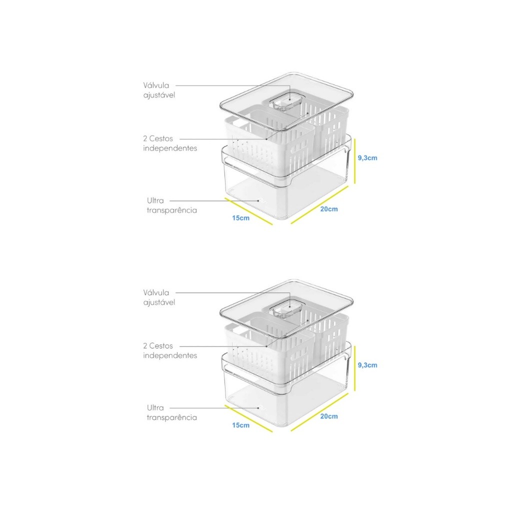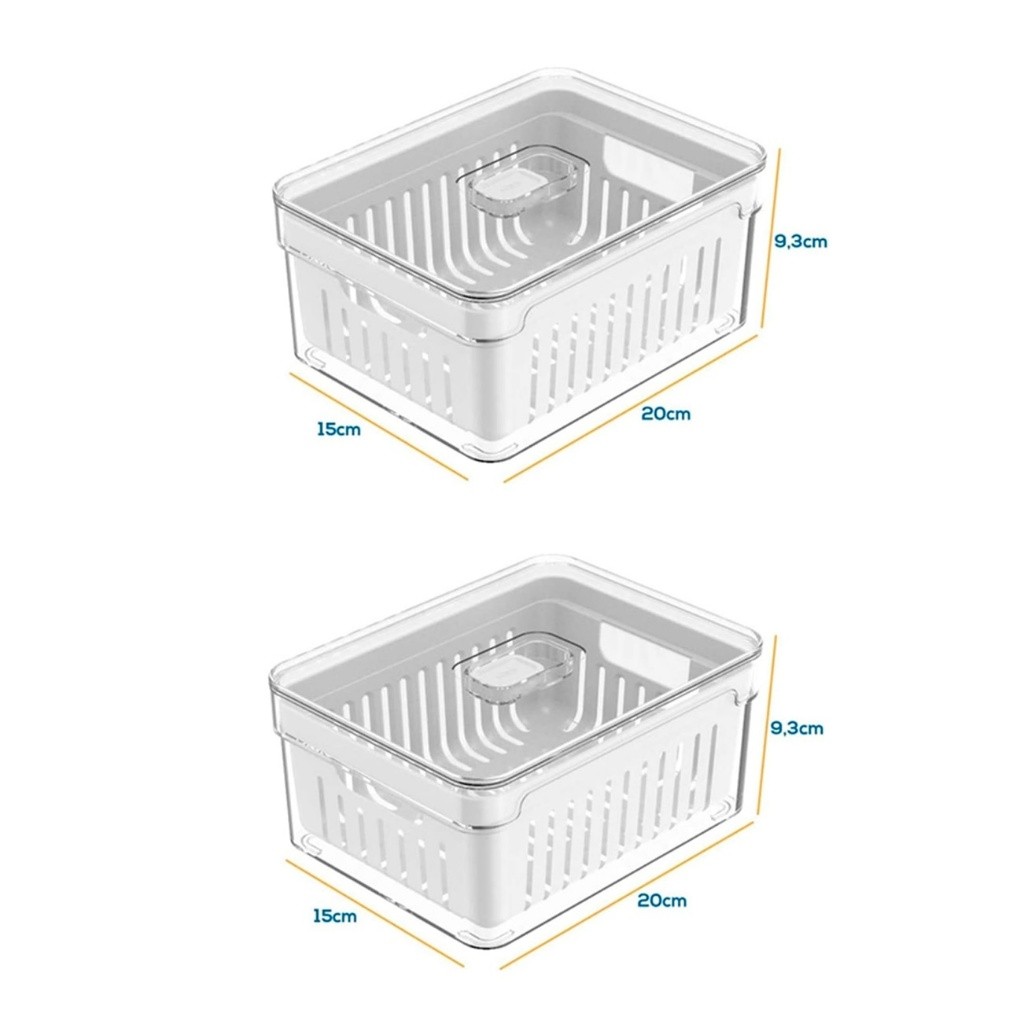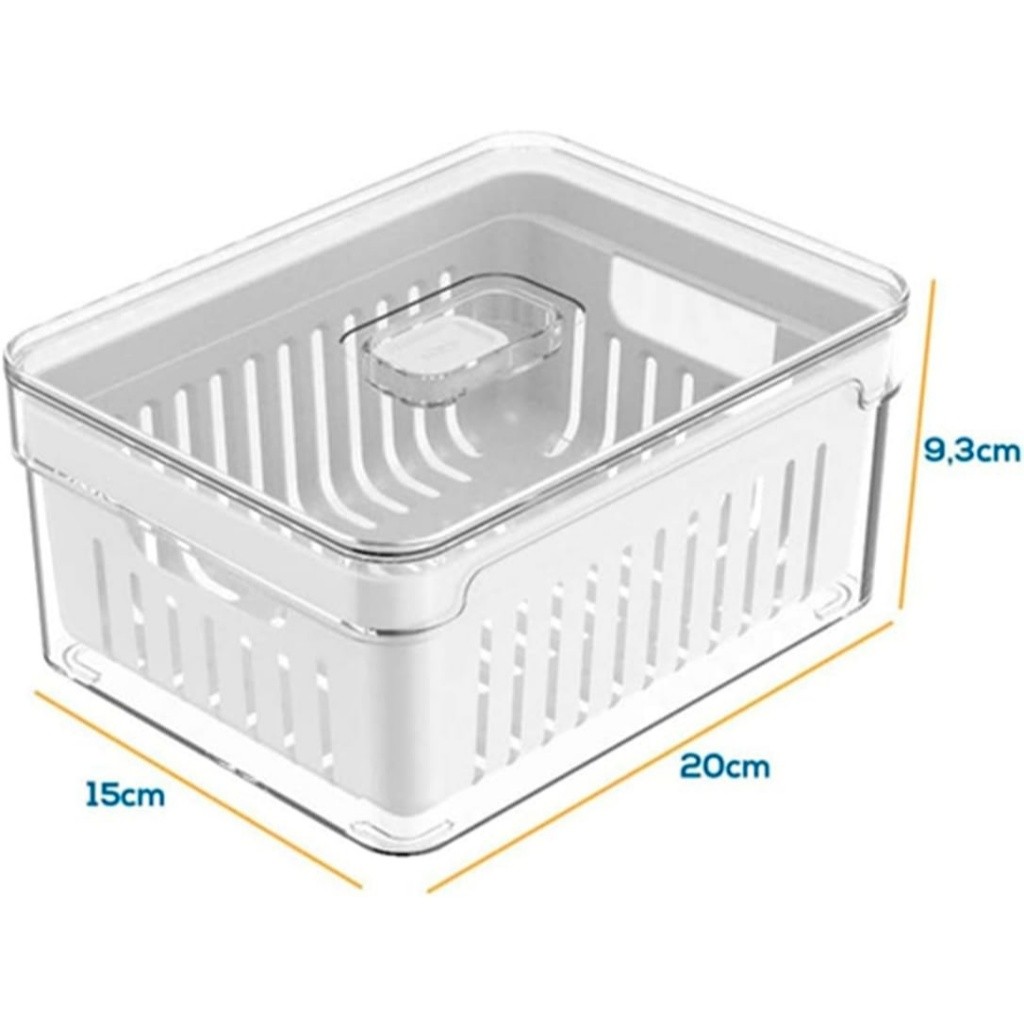 Kit Pote Organizador de Geladeira Com Escorredor Cesto Tampa Multiuso Alimentos Verdura Vegetais OU
