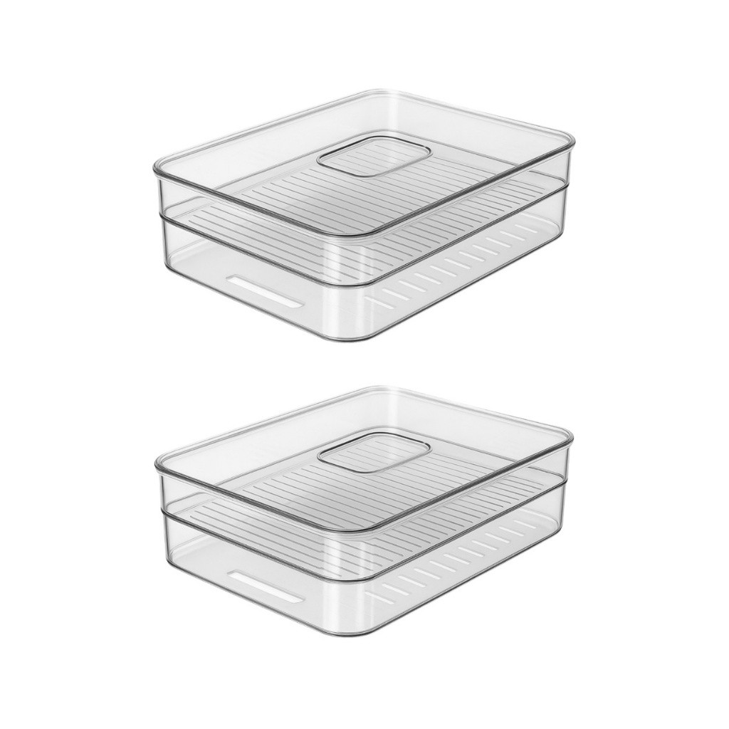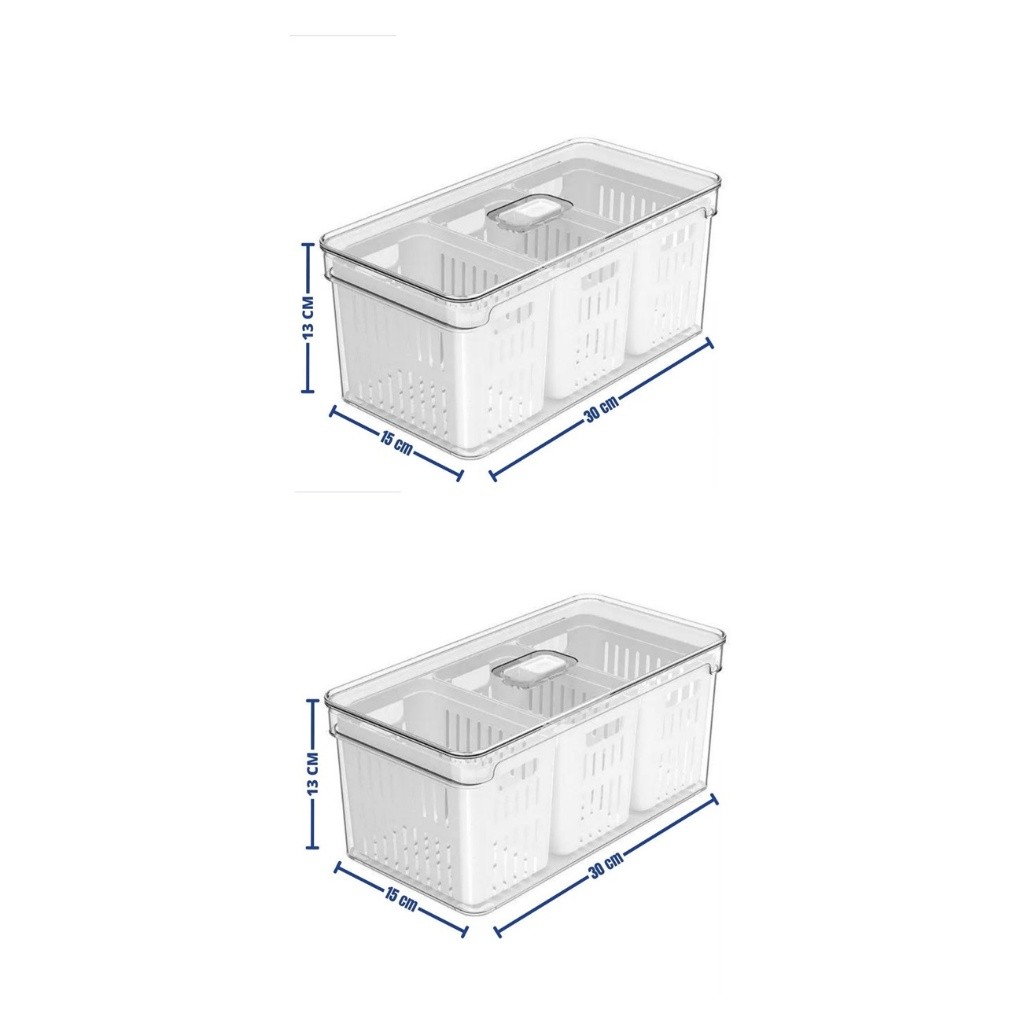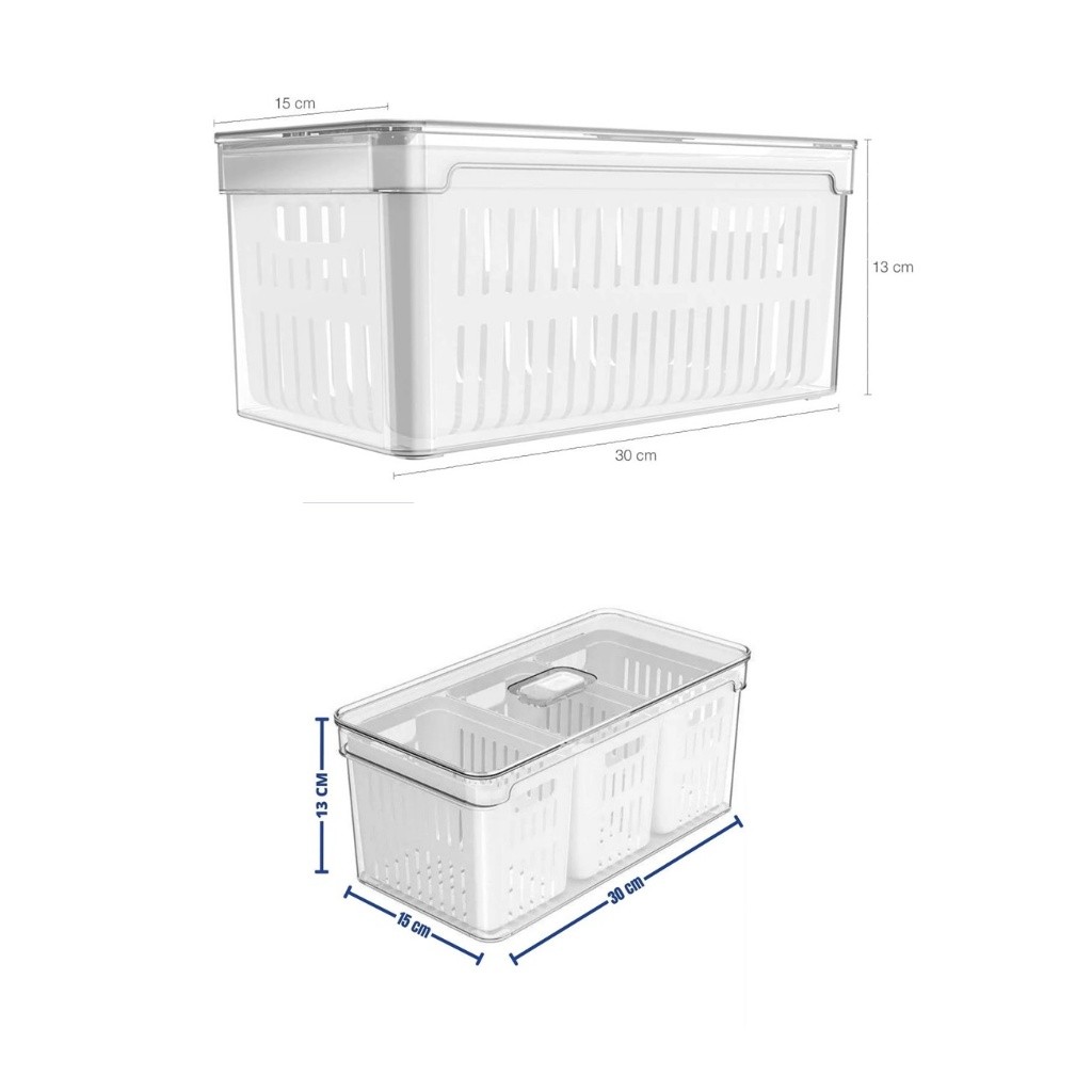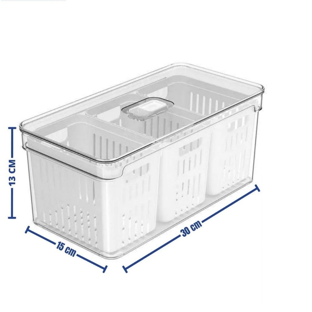 Kit Pote Organizador de Geladeira Com Escorredor Cesto Tampa Multiuso Alimentos Verdura Vegetais OU