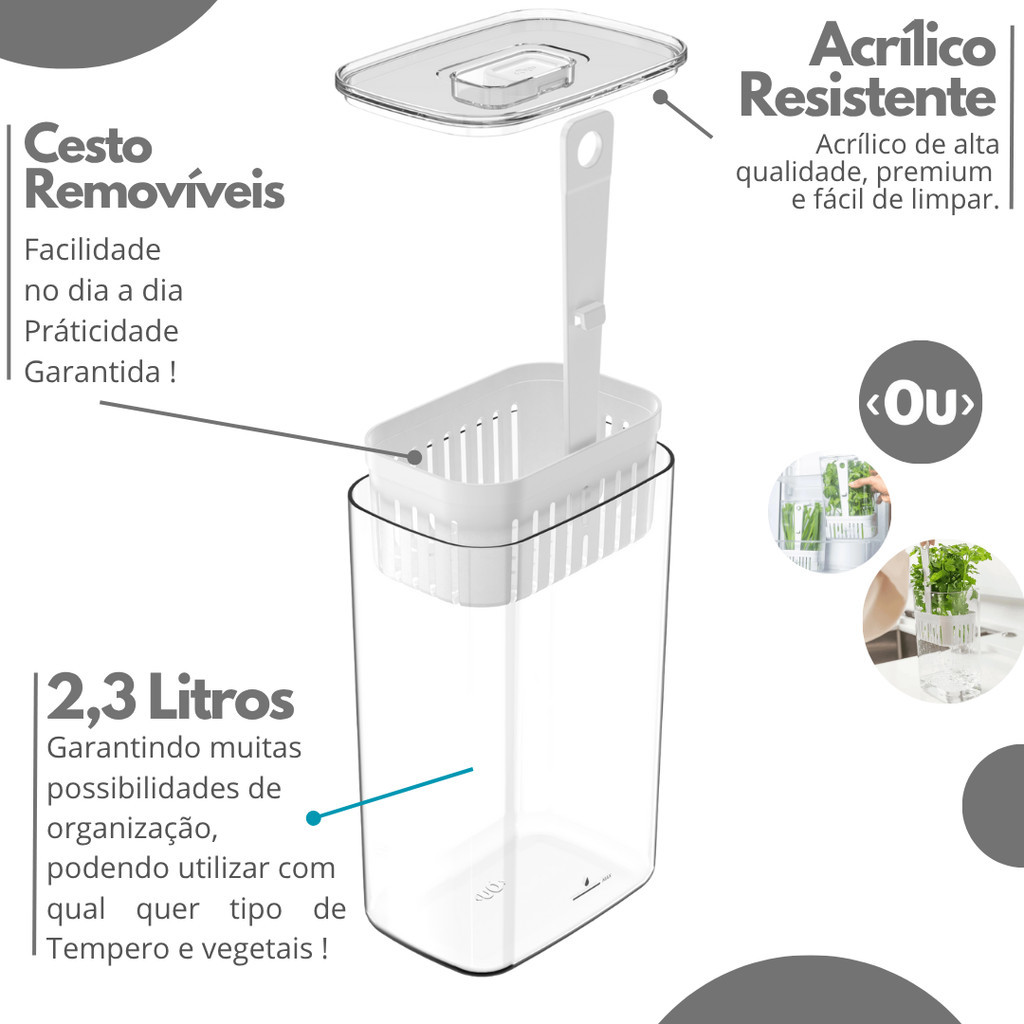 Pote Organizador De Temperos Verduras Geladeira 2,3L Com Escorredor Coentro Salsinha Manjericão OU