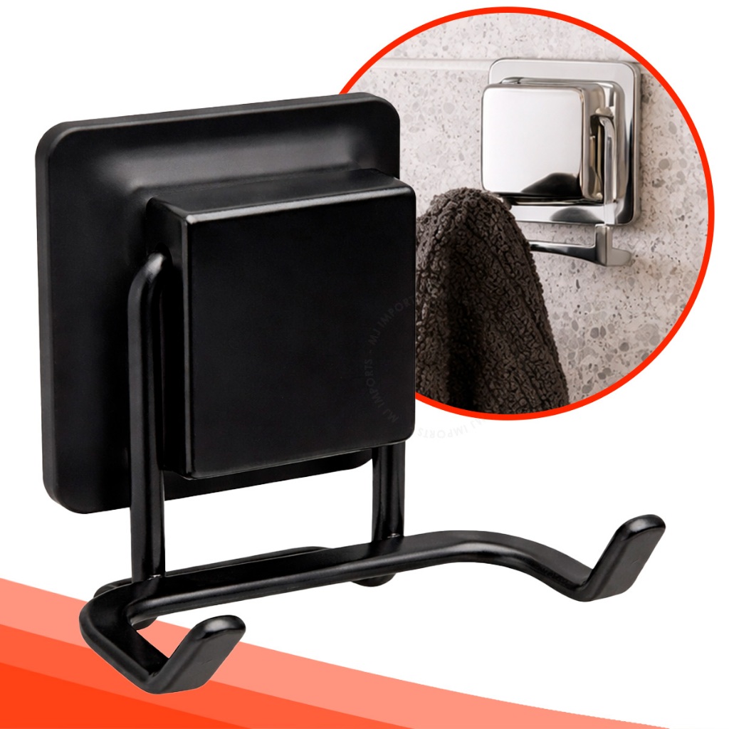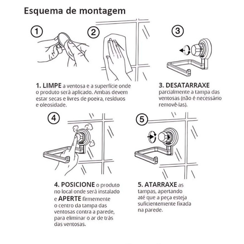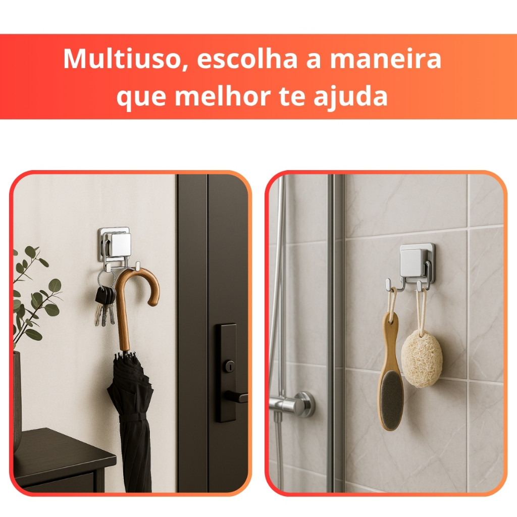 Gancho Toalha Duplo Multiuso Ventosa Cromado Sem Furo Parede Vidro Azulejo Banheiro Forte Durável