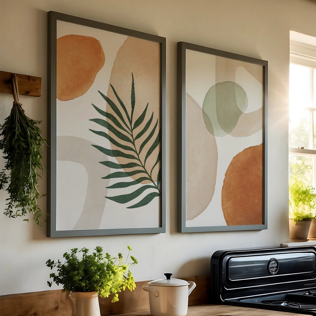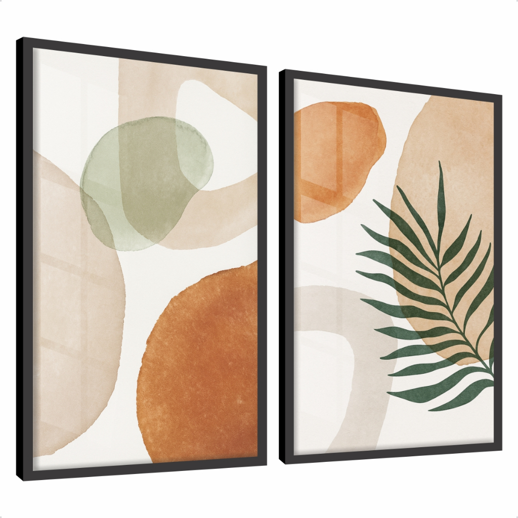 Quadros Decorativos com Moldura Sala Quarto Kit Duo Escandinavo Estilo Boho Aquarela Moderno Vidro