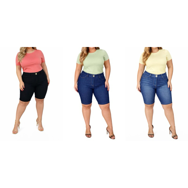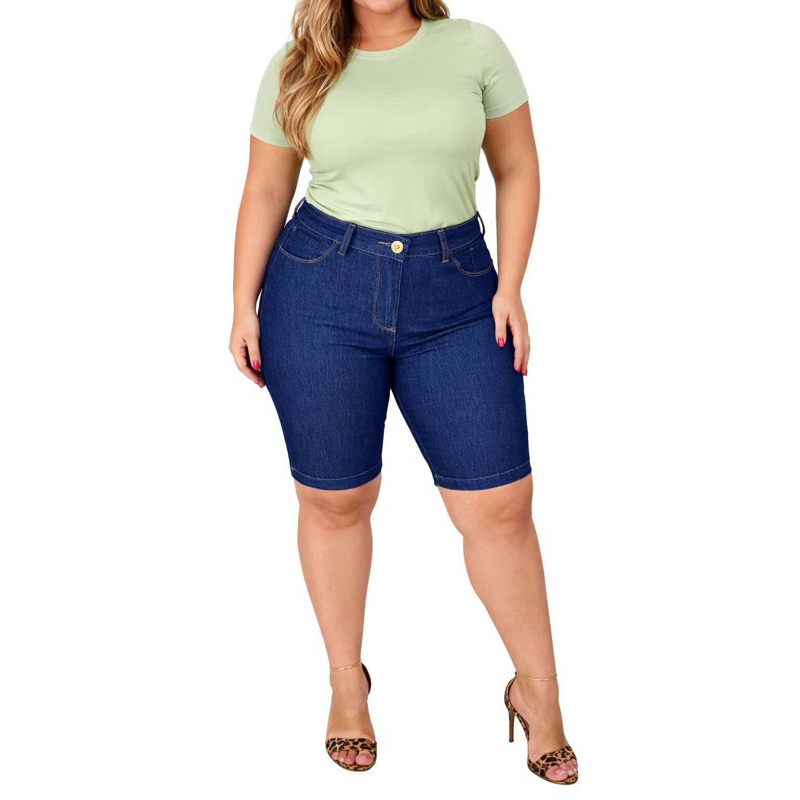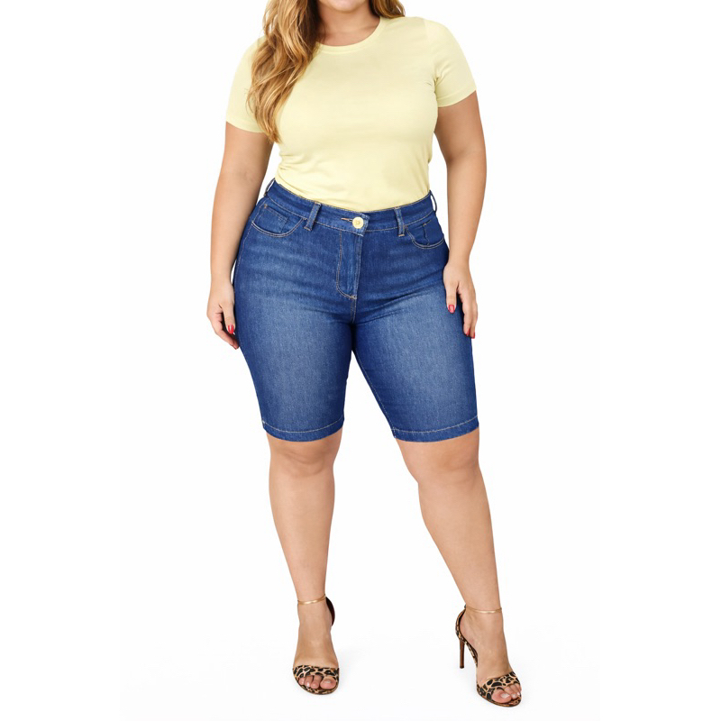 Bermuda Jeans Feminina Plus Size com Elastano cos alto