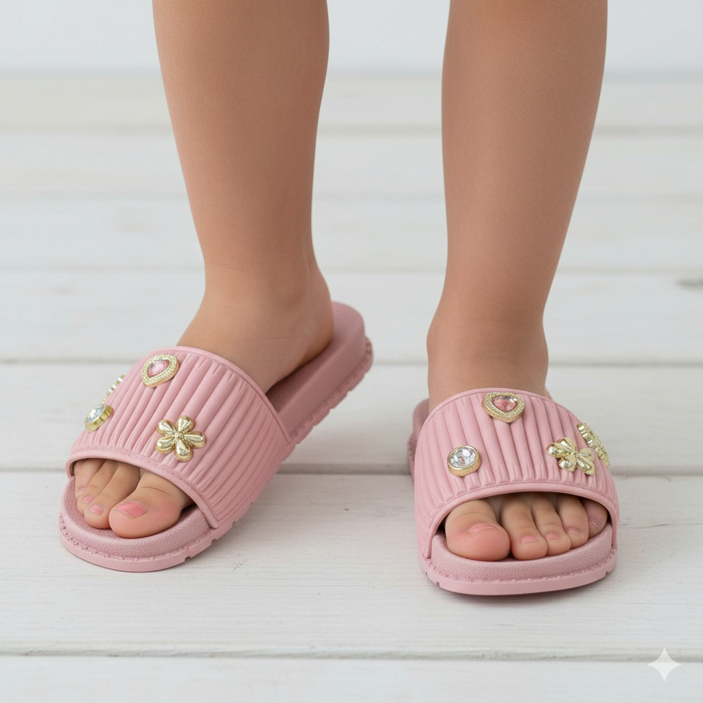 Sandália Slide Molekinha Chinelo Pingentes Broches Pin Confortável Botóns 2341133