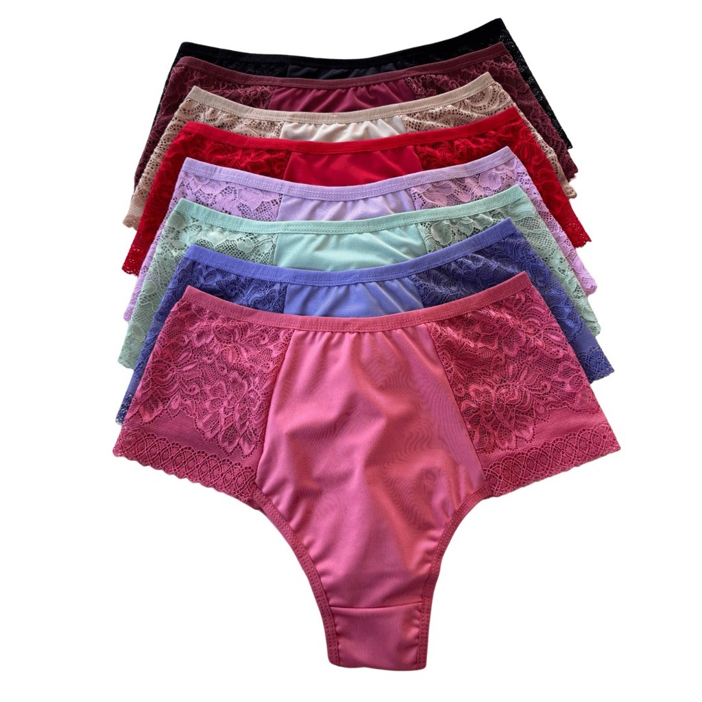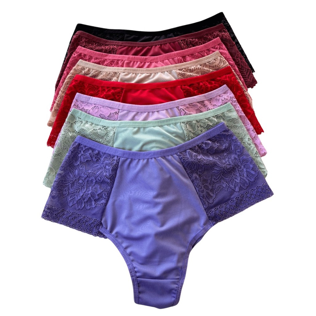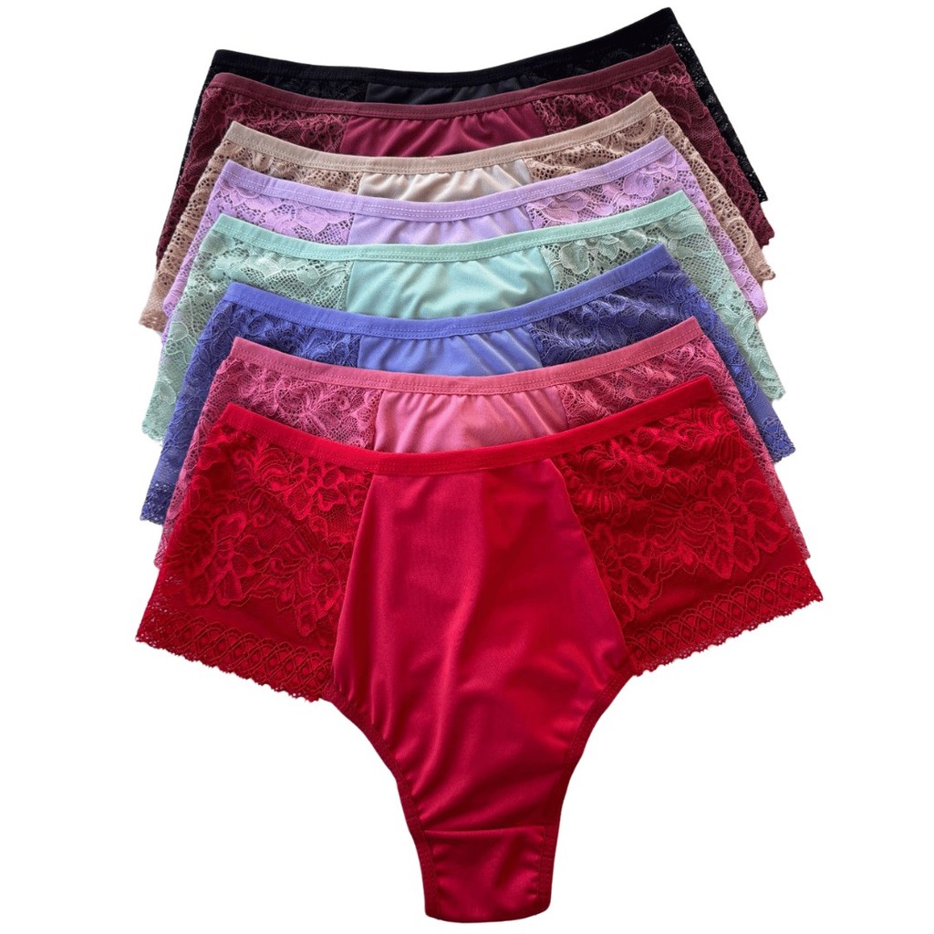 Kit Calcinhas Plus Size Fio Duplo Renda Premium Lateral Larga Forro 100% Algodao Lingerie Feminina