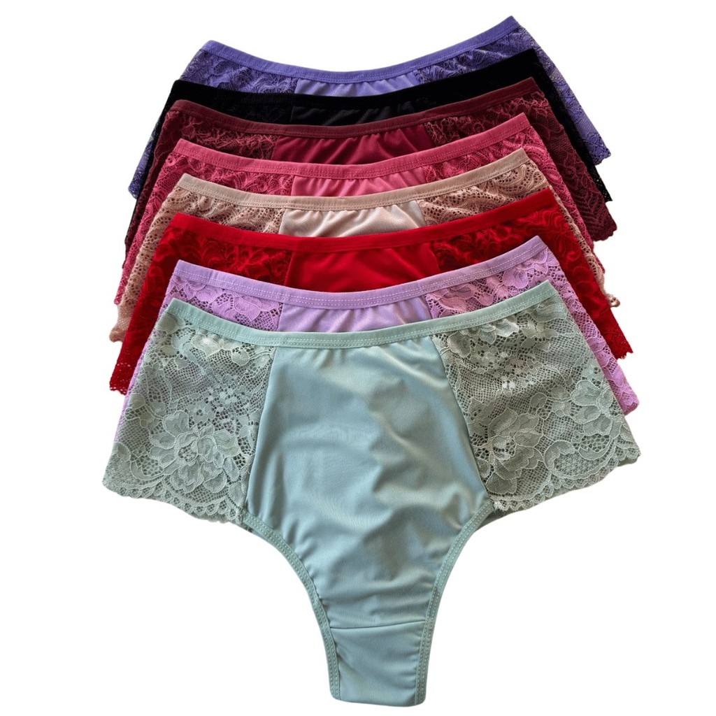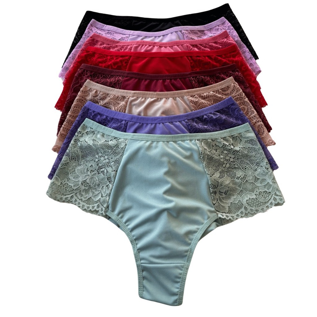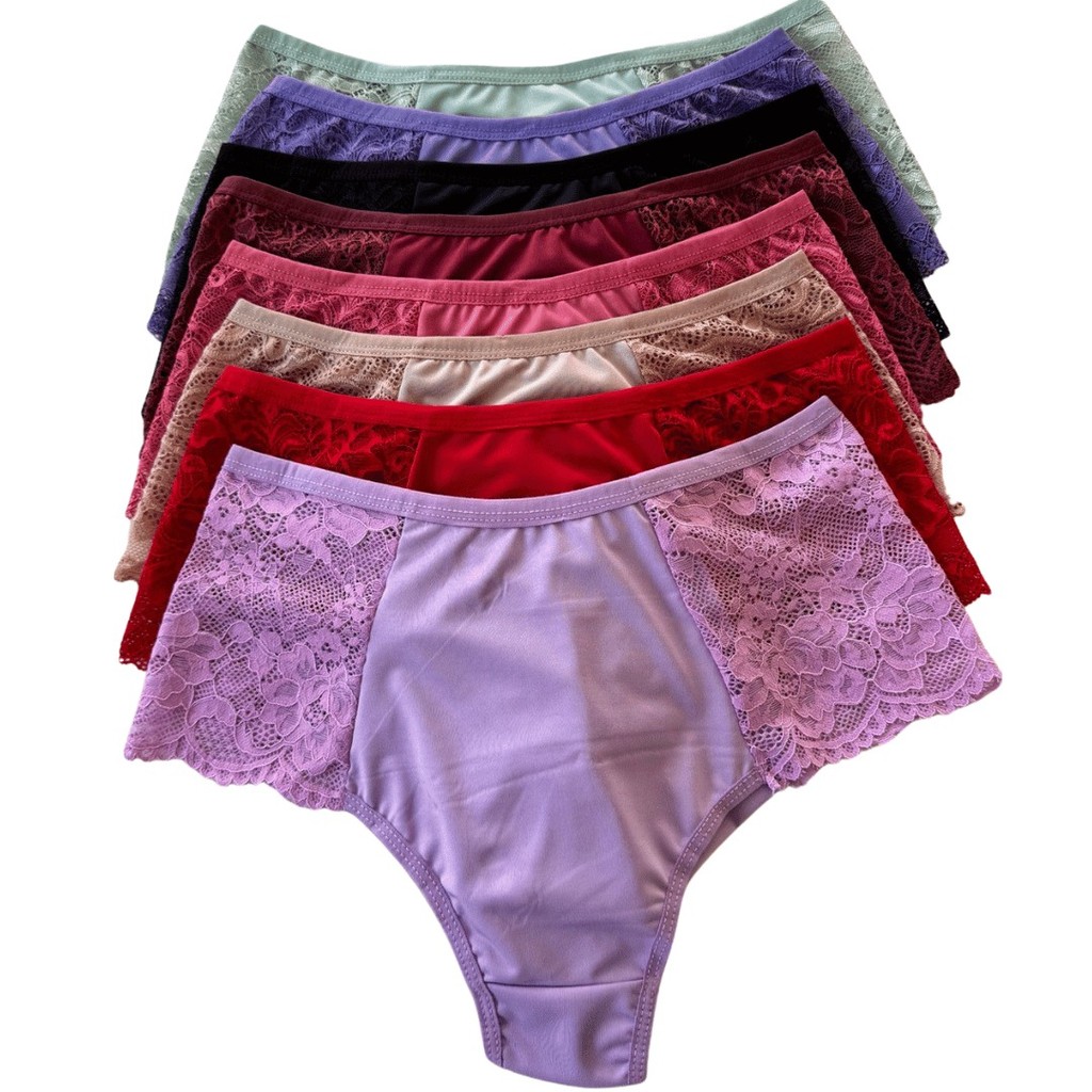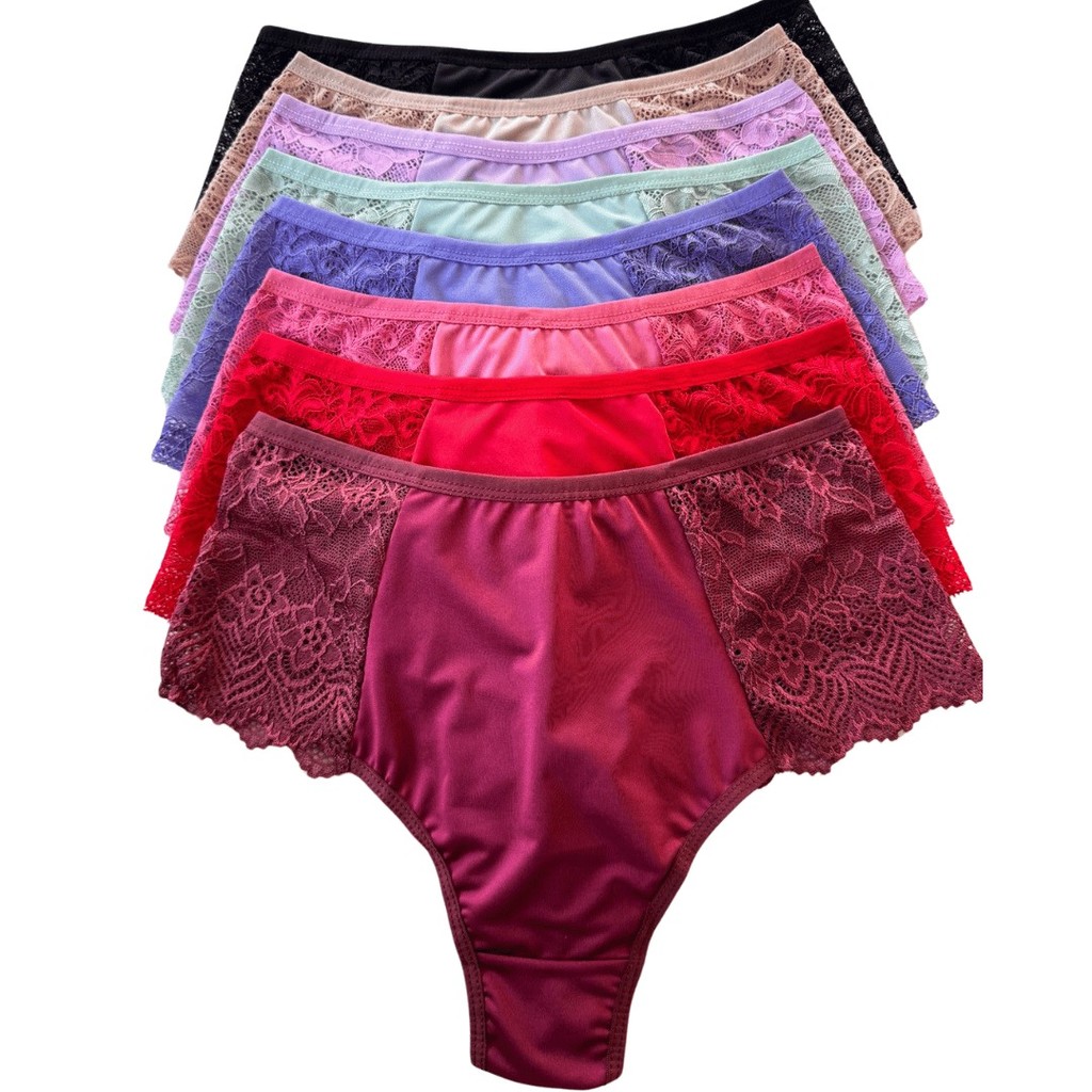 Kit Calcinhas Plus Size Fio Duplo Renda Premium Lateral Larga Forro 100% Algodao Lingerie Feminina