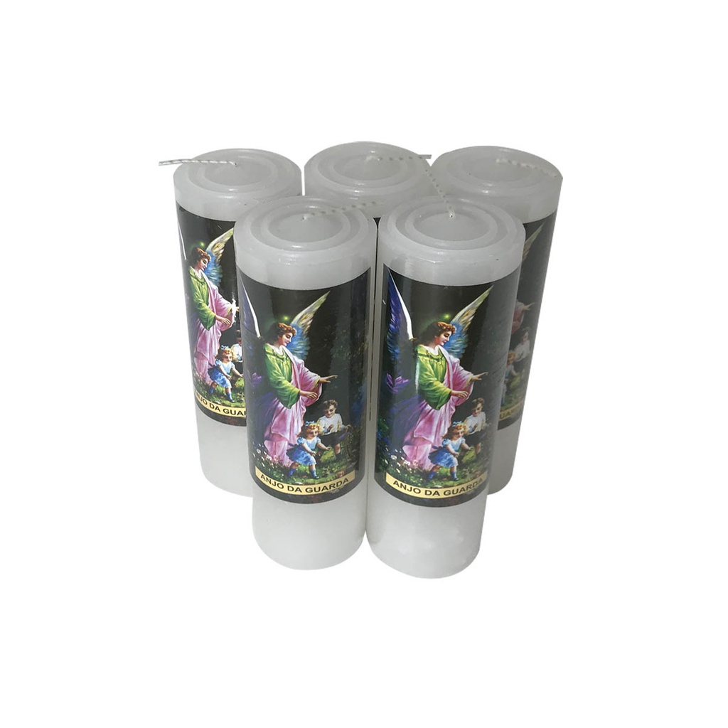 KIT 5 Velas 7 dias Votivas Brancas Anjo da Guarda