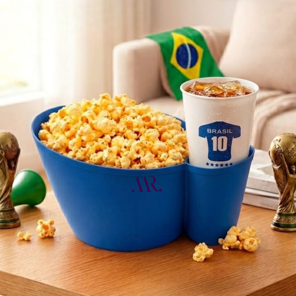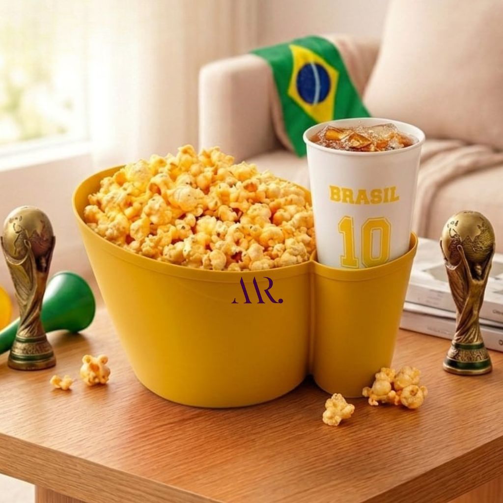 Kit Balde de Pipoca + Copo do Brasil 450ml Temático Jogos Filmes Cinema