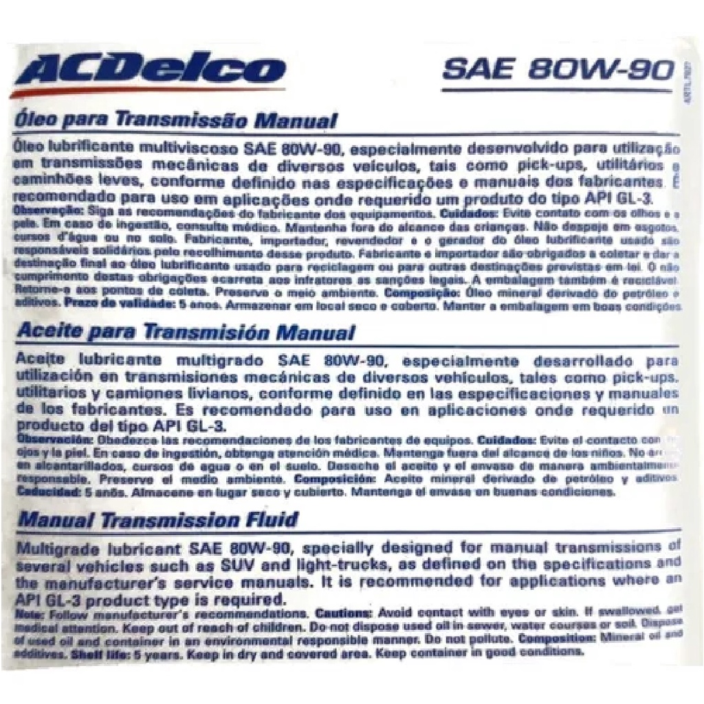 1 Litro de Óleo de Câmbio Manual 80W90 Mineral API GL-3