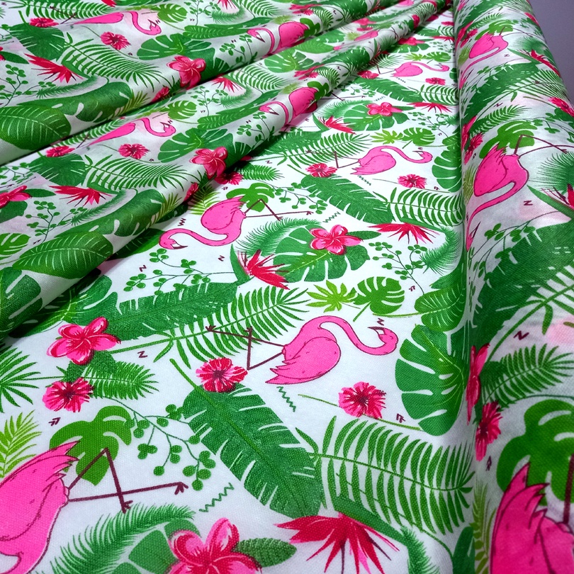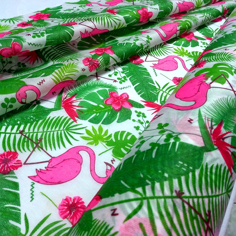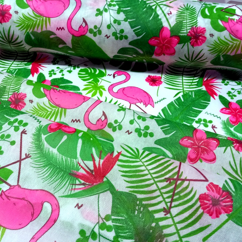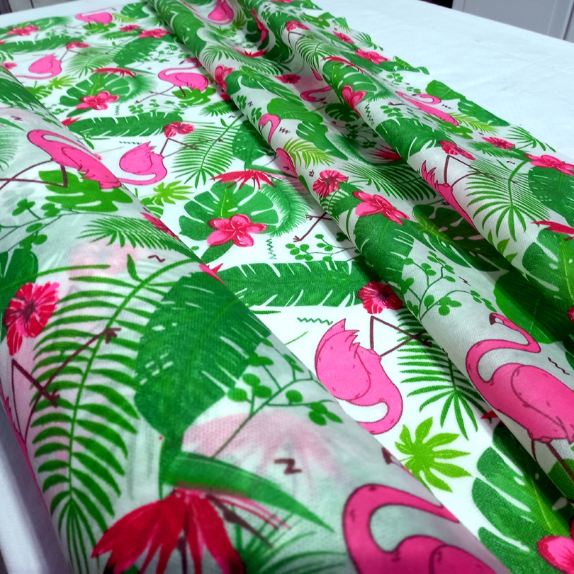 TNT Estampado Flamingo Folha Tropical 3,00m X 1,40m.Tipo Tecido, Para Festas, Decoração, ou como Papel de Parede.