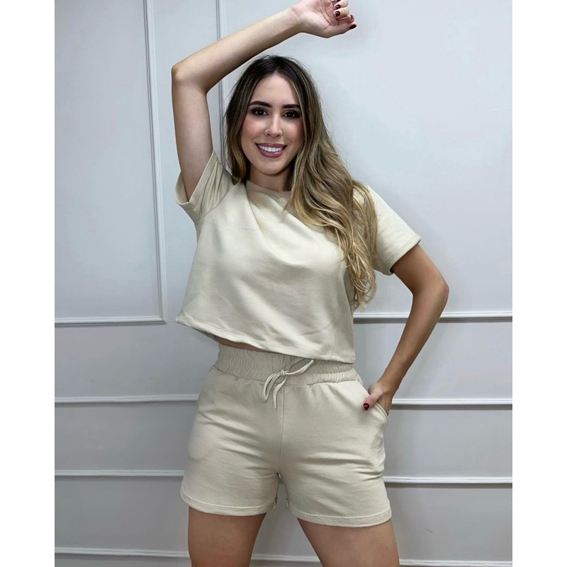 Conjunto Moletinho feminino Shorts e top Cropped de manguinha ENVIO RAPIDO