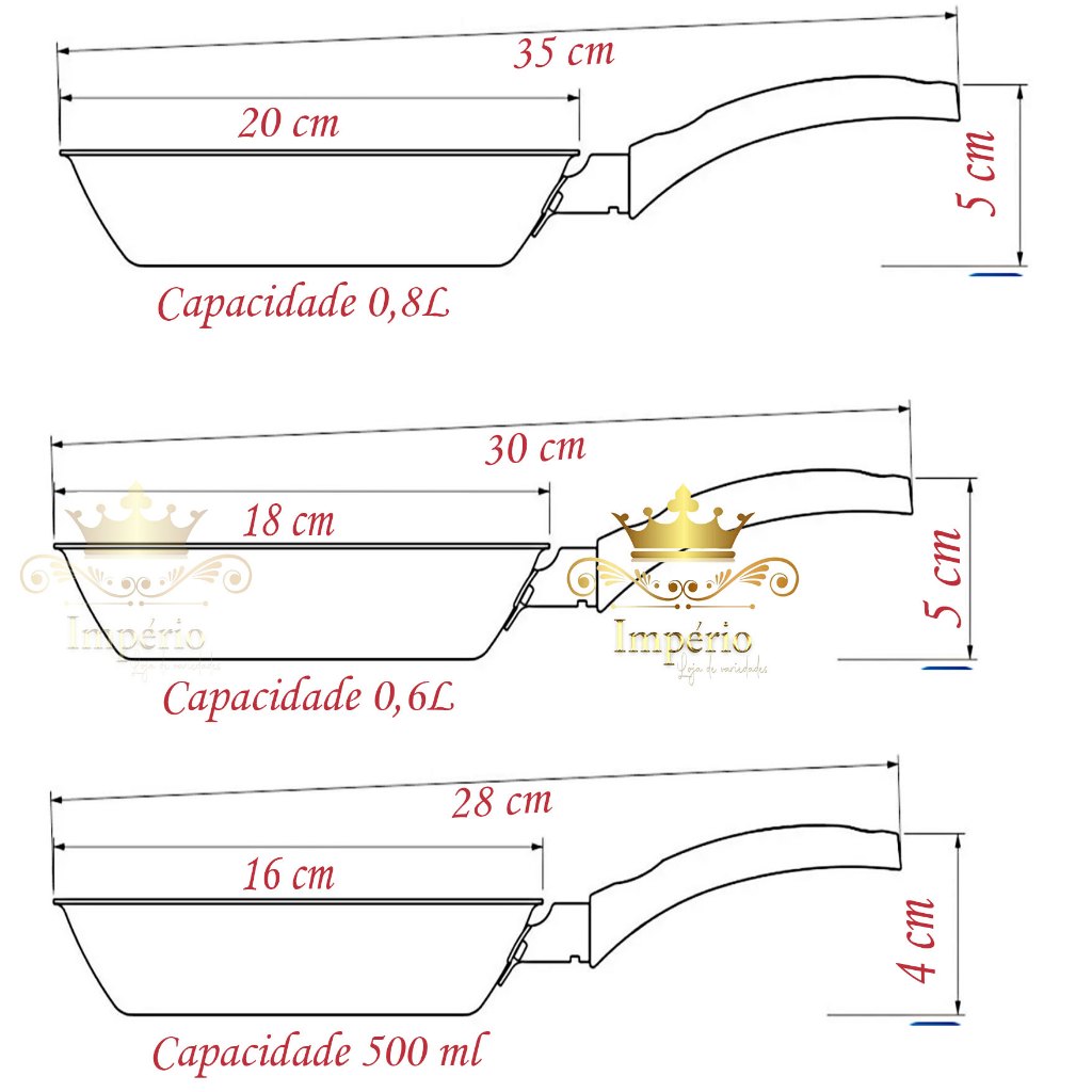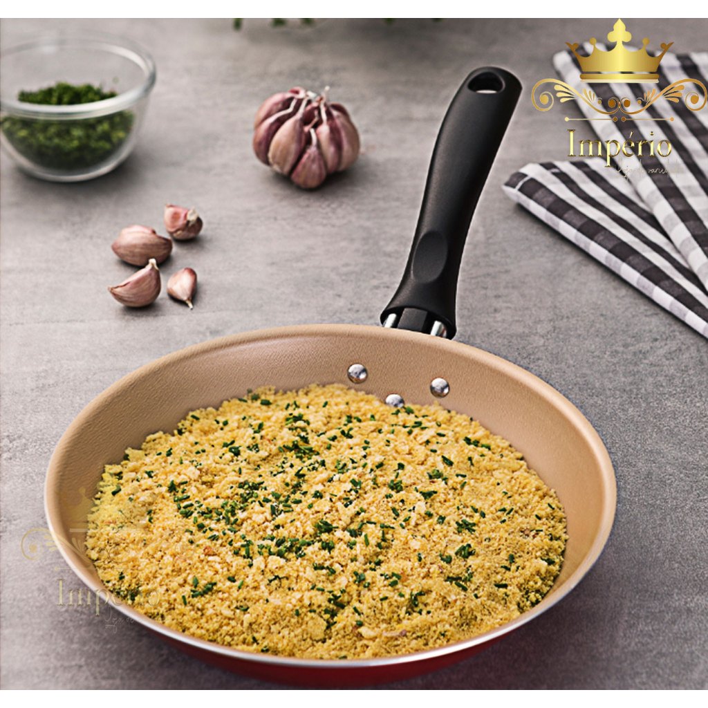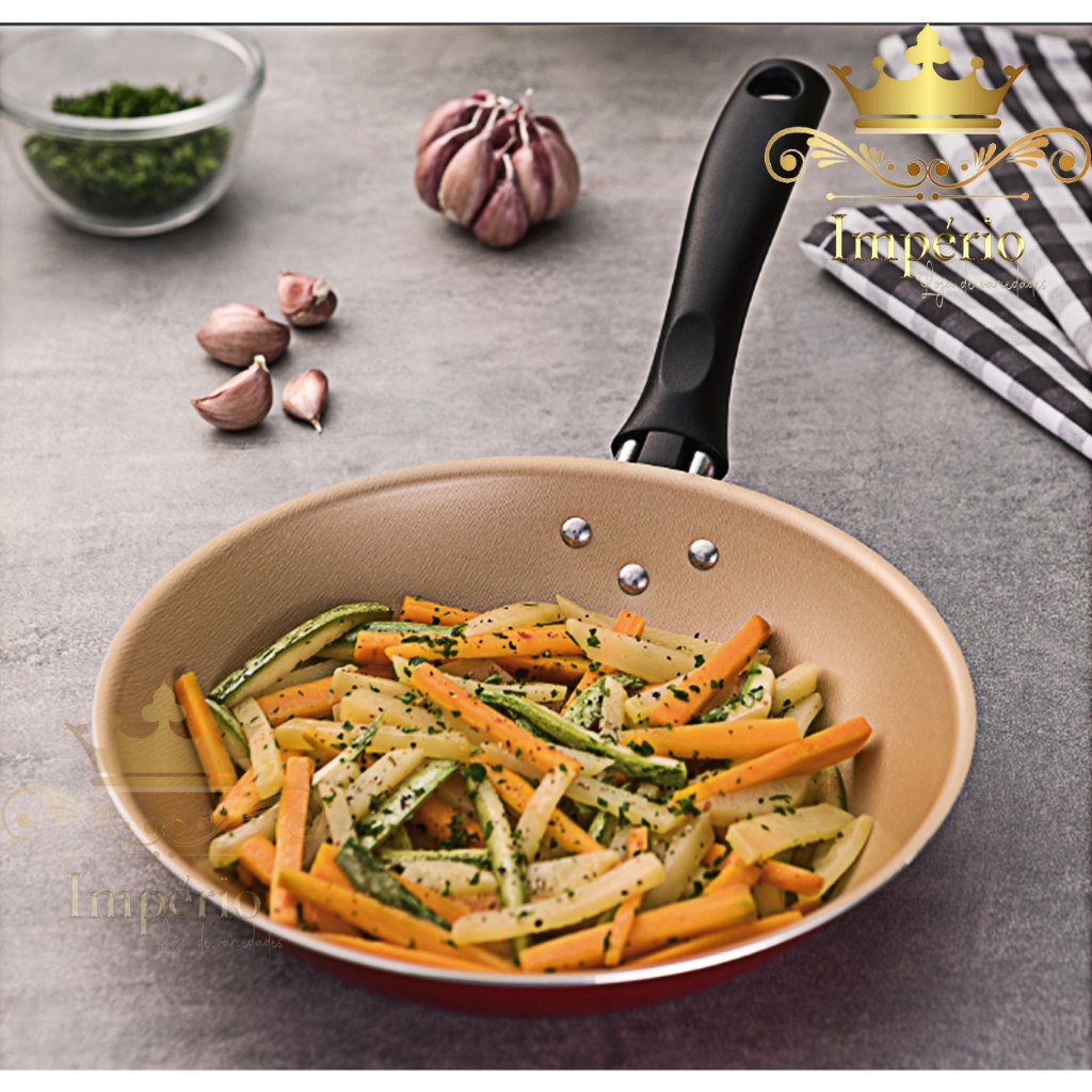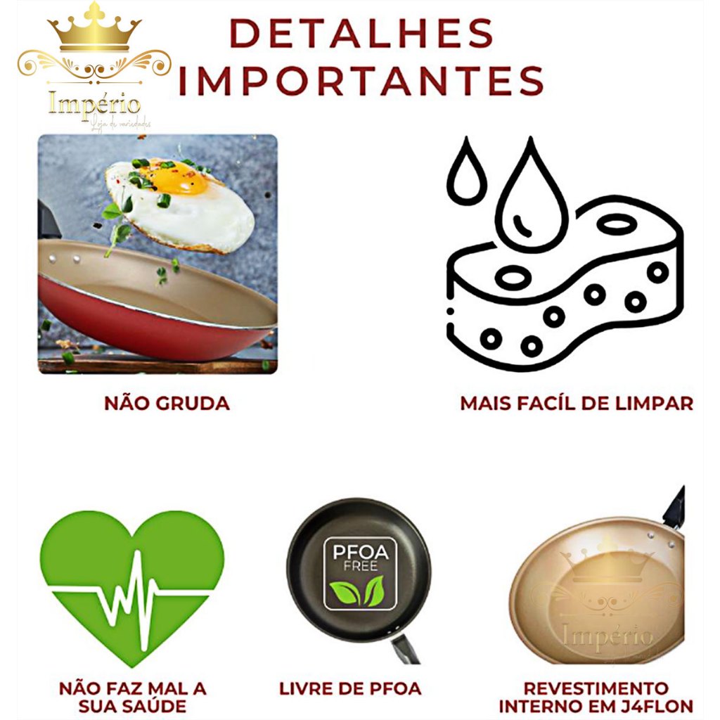 Kit de Frigideiras 3 Peças Tamanho 20, 18 E 16 Cm Com Espátula 3 Frigideira Antiaderente Francesa Com 5 Camadas De Teflon Cor Cereja Dourada Cobre Alumínio Reforçada Funda Para Ovo