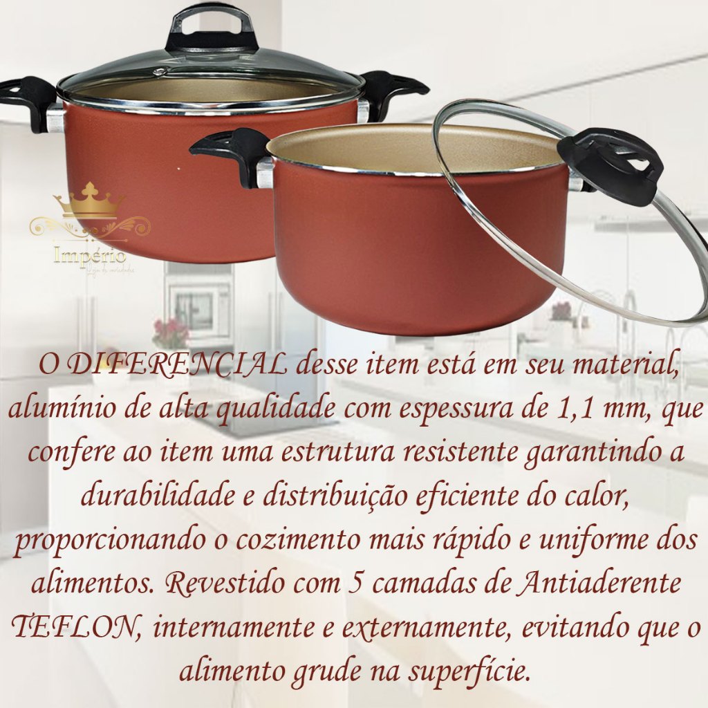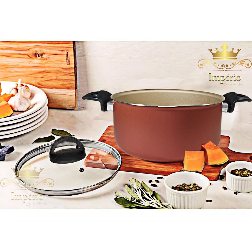 Kit 2 Panelas Caçarolas Tamanho Grande 02 Peças 18 E 20 Cm Cor Cereja Dourada Gold Cobre Com Tampa De Vidro Kit Panela Antiaderente Com 5 Camadas De Teflon