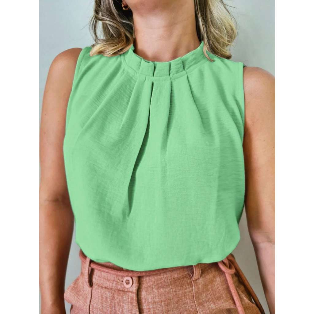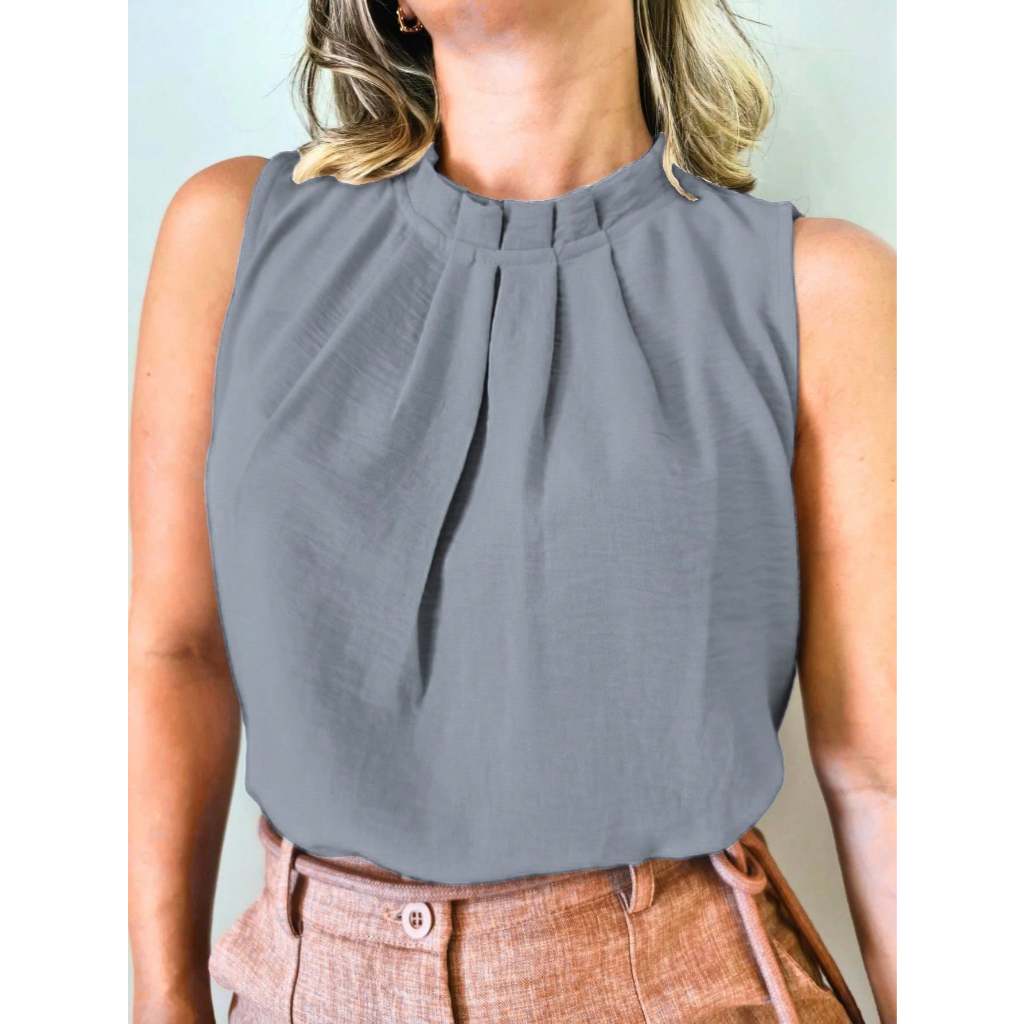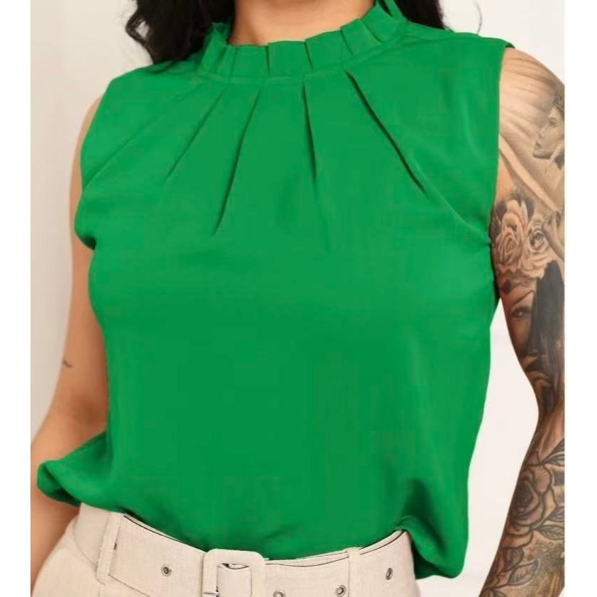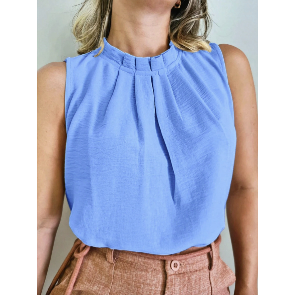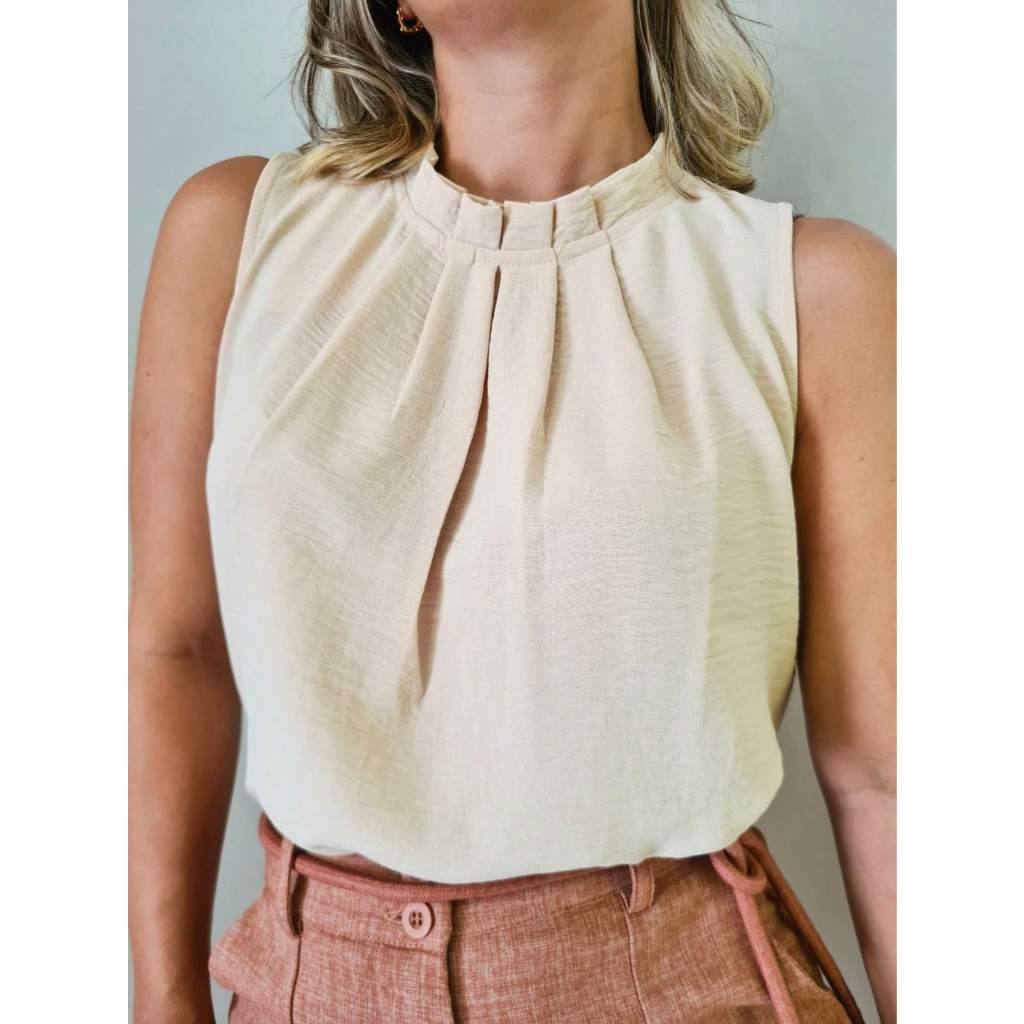 Regata social Feminina tecido duna gola alta com botão na costa 8001