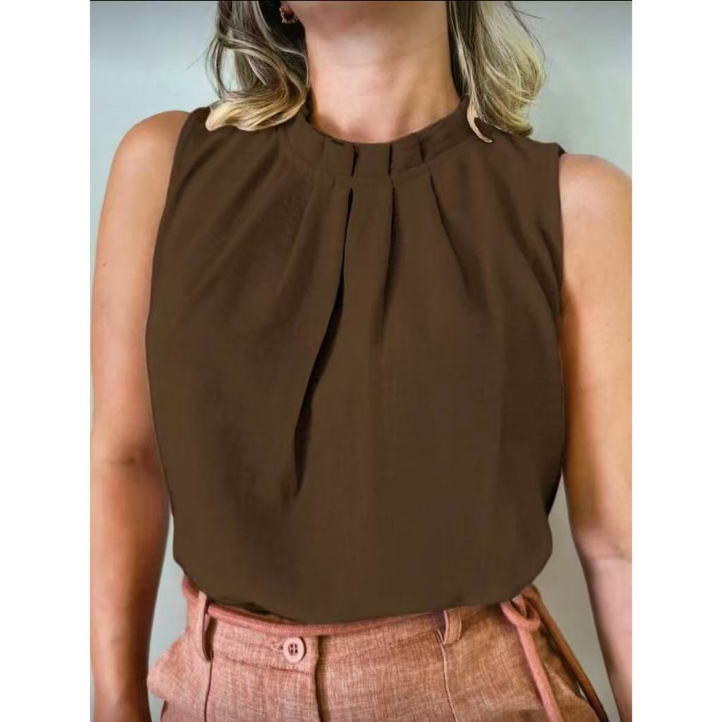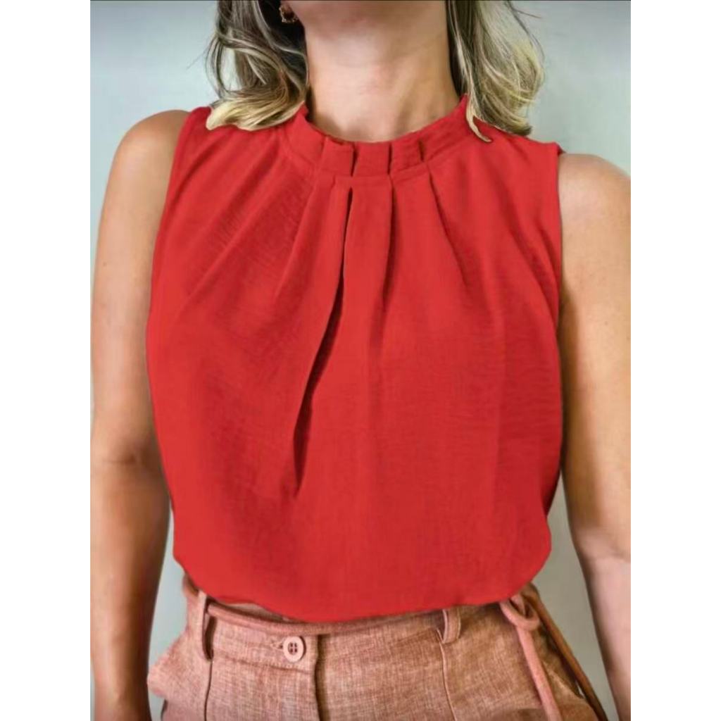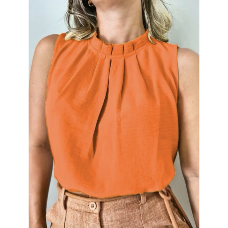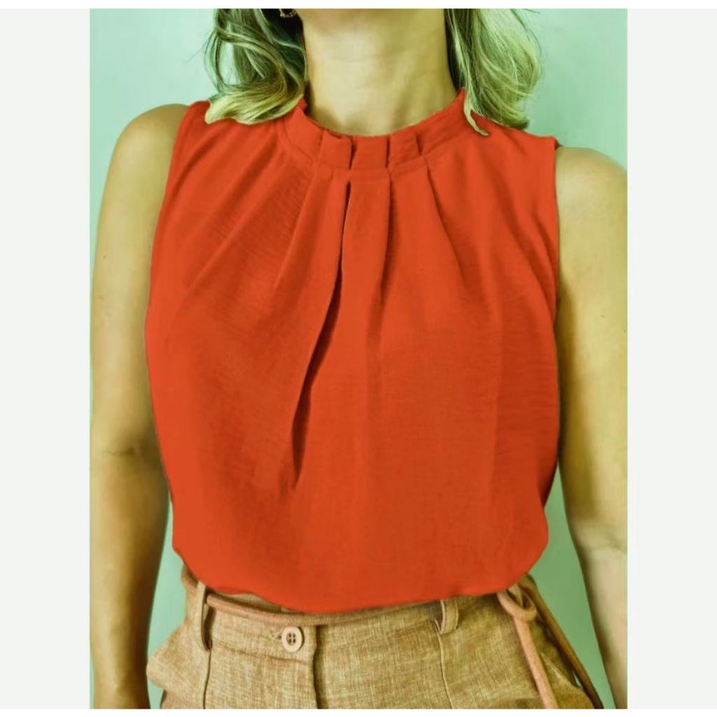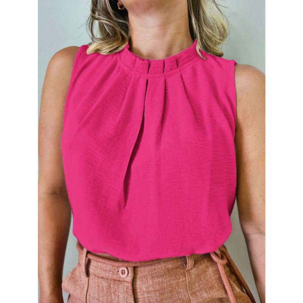 Regata social Feminina tecido duna gola alta com botão na costa 8001