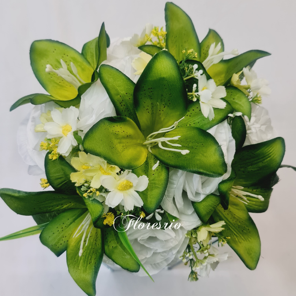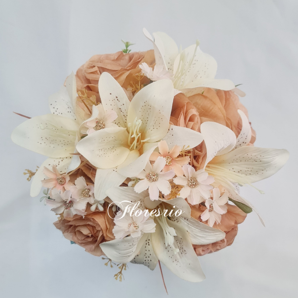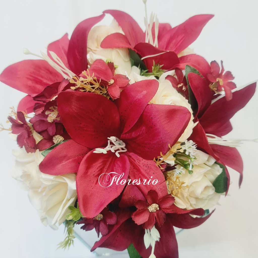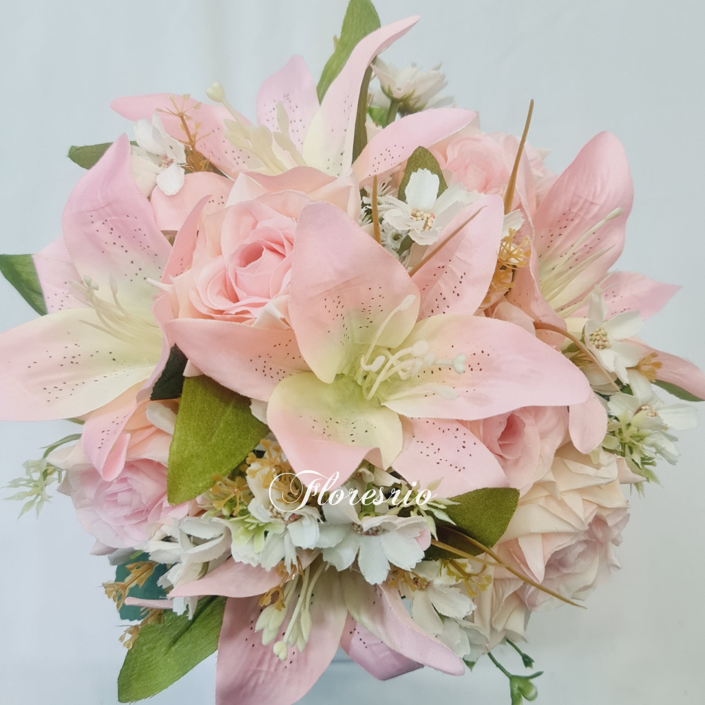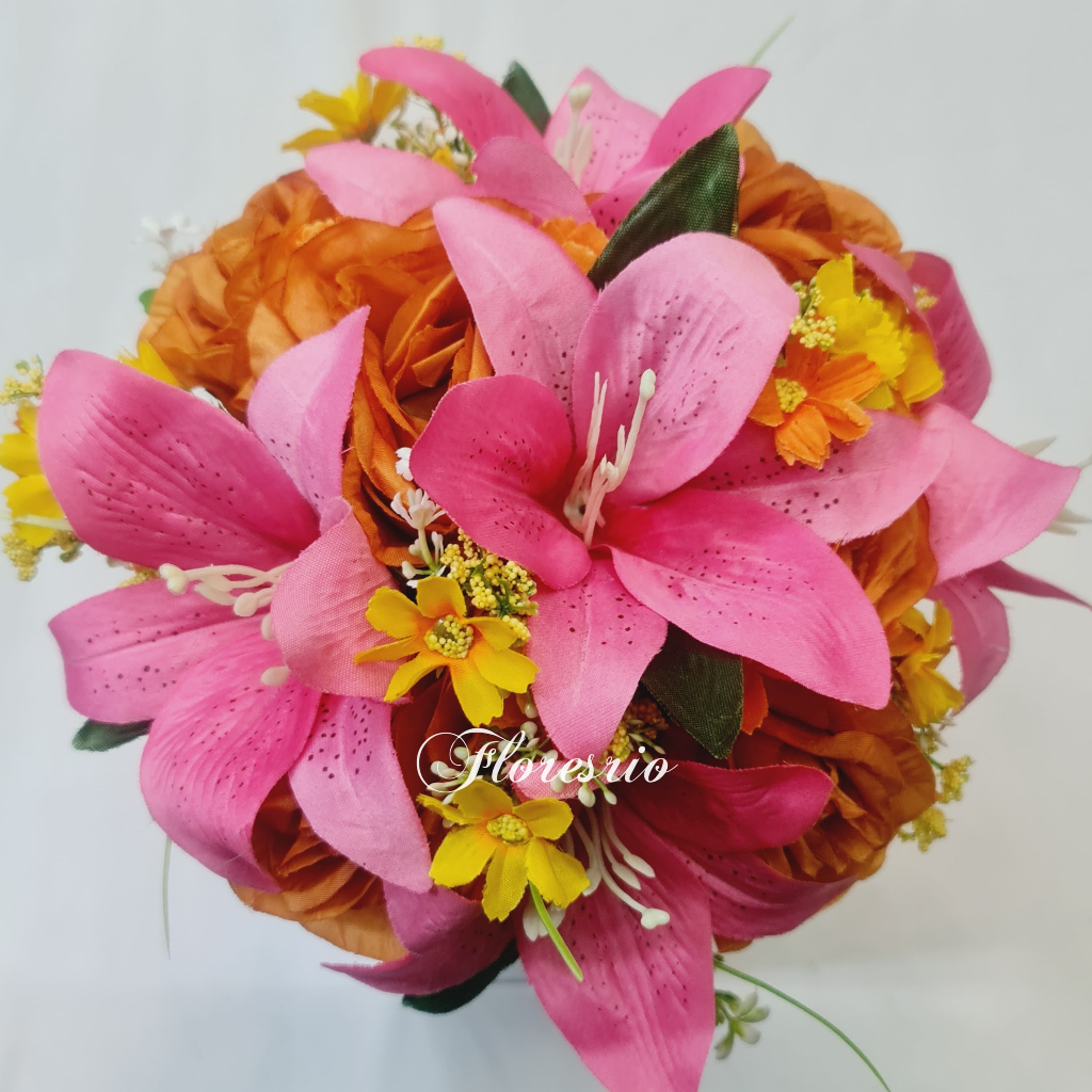 Buquê de Noiva Colorido Lírio Rosa Flores artificiais com cores variadas para Casamentos Civil ou Religioso