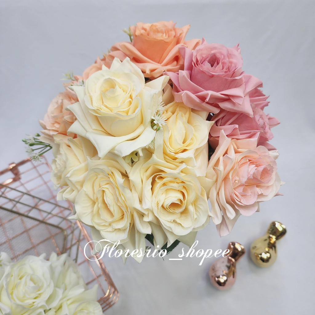 Rosa artificial buque com 5 flor rosas grande P/ Decoração Casamento, Arranjos, Decorar Festas e casa