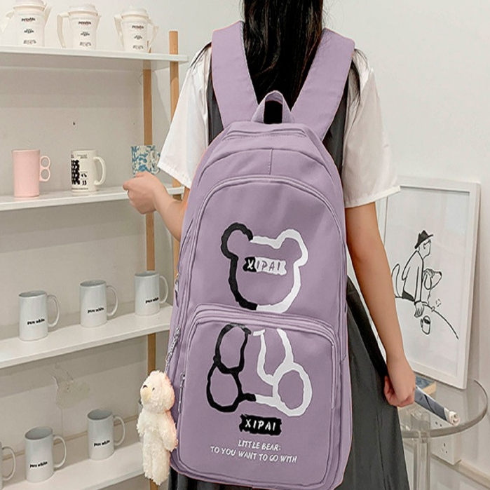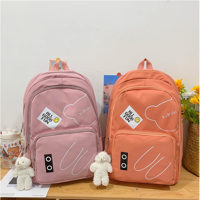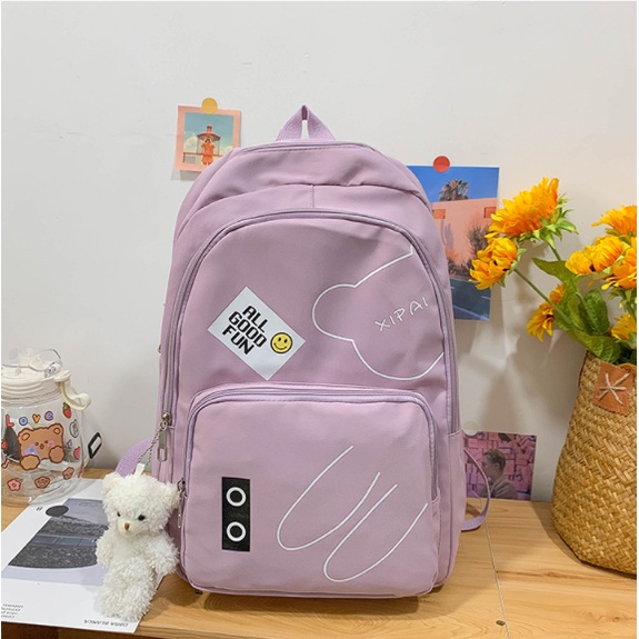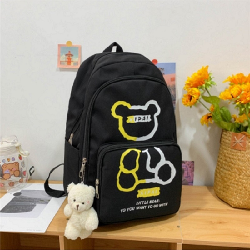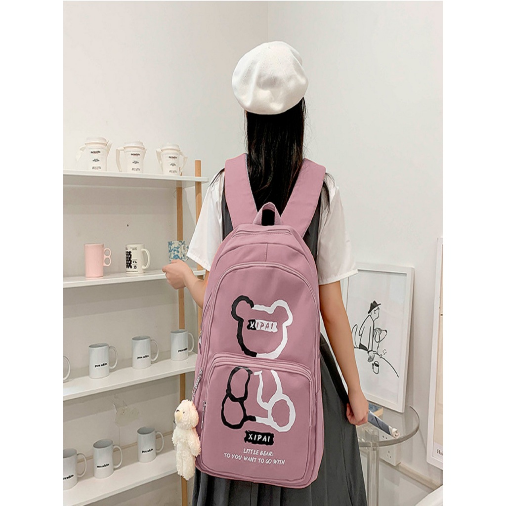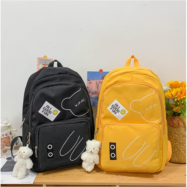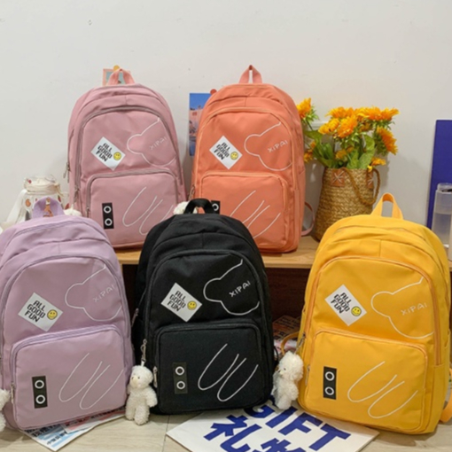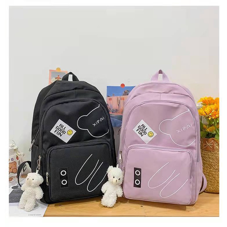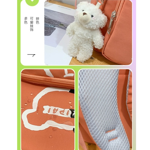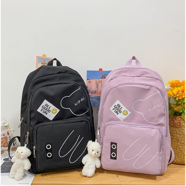 Mochila feminina grande Nylon impermeável escolar faculdade Com Pingente ursinho