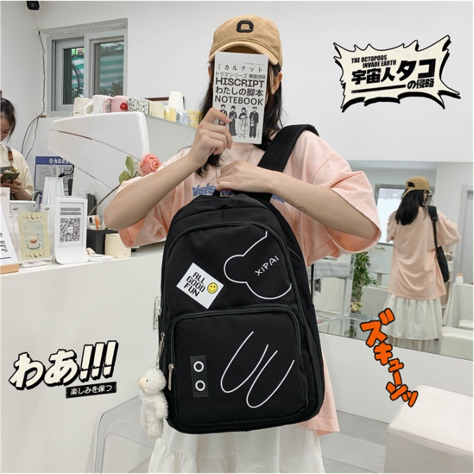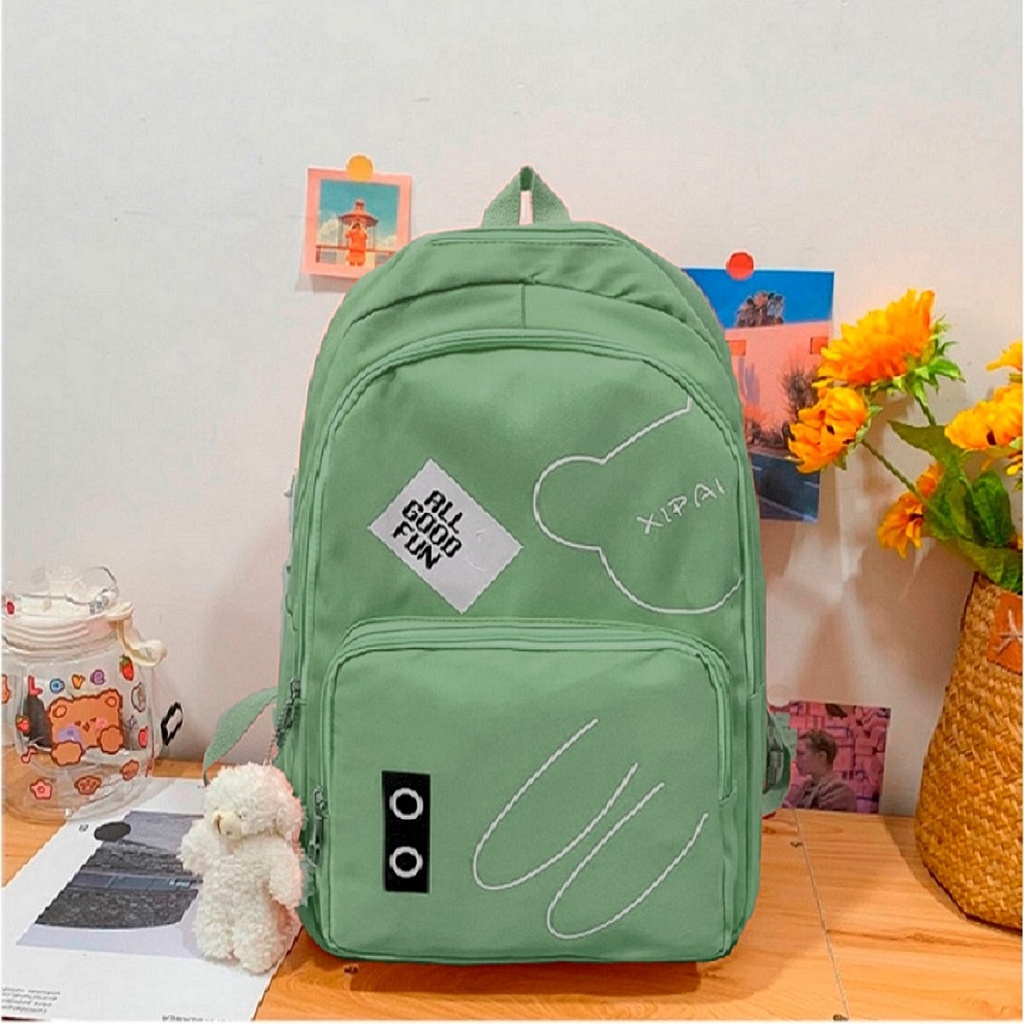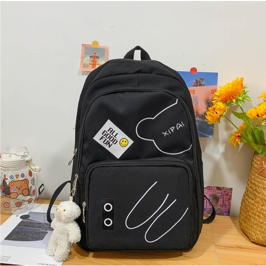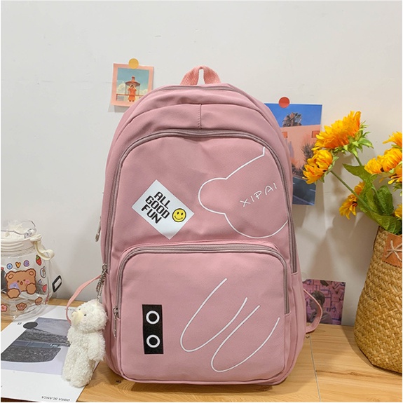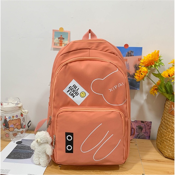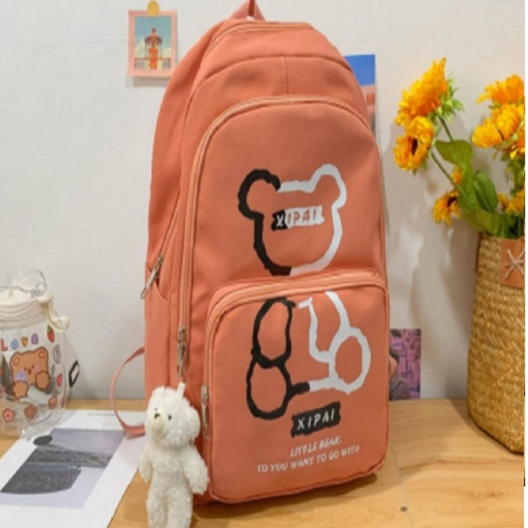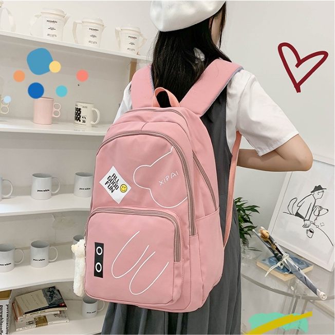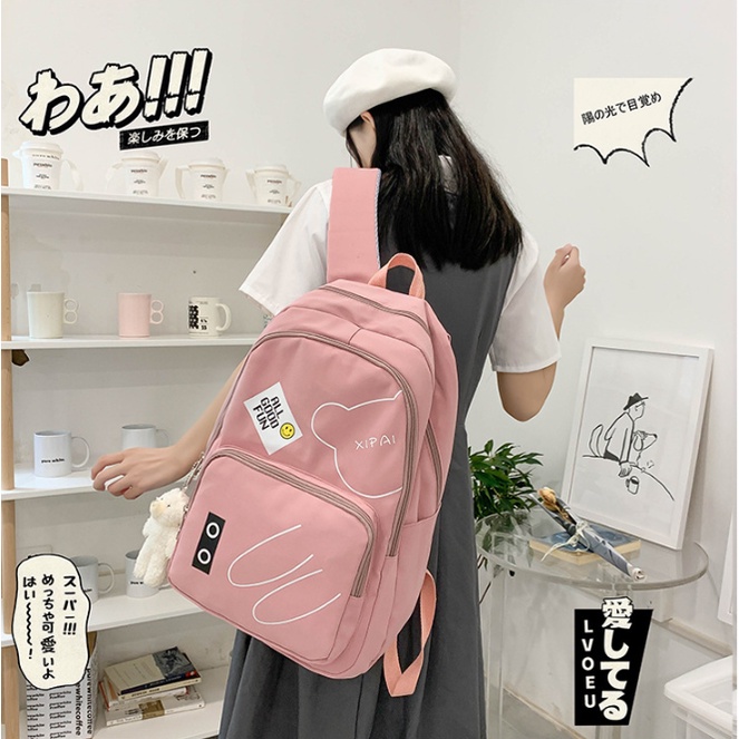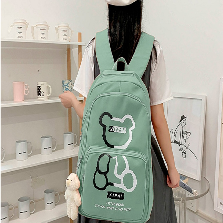 Mochila feminina grande Nylon impermeável escolar faculdade Com Pingente ursinho