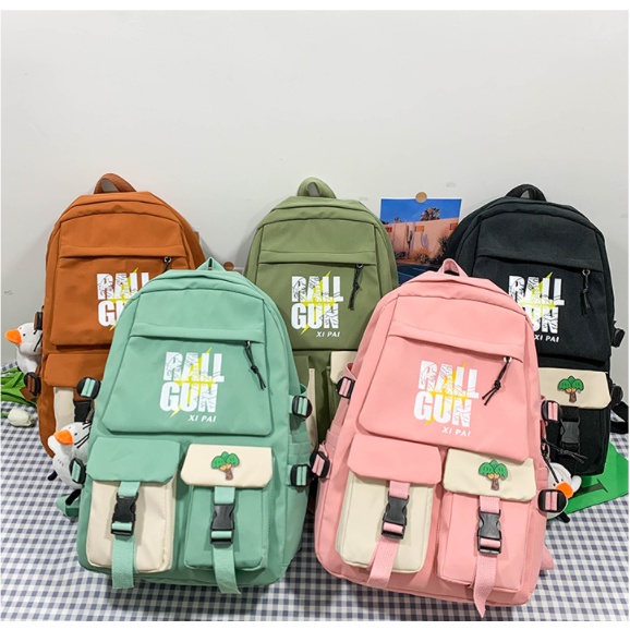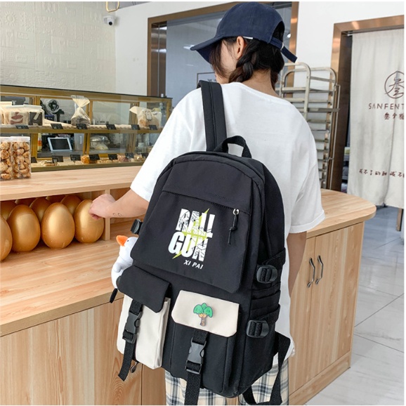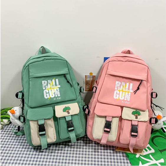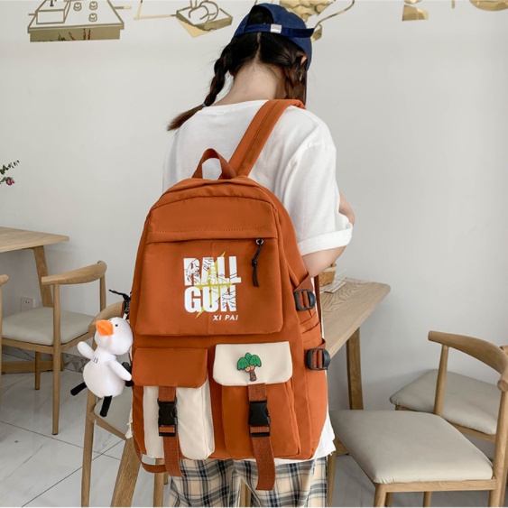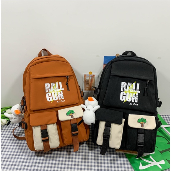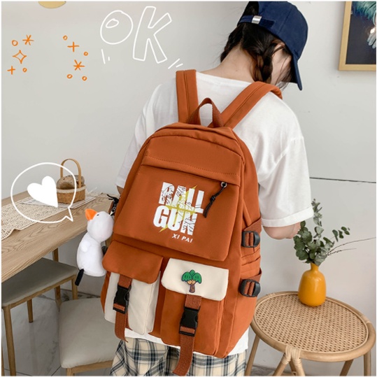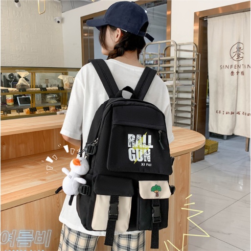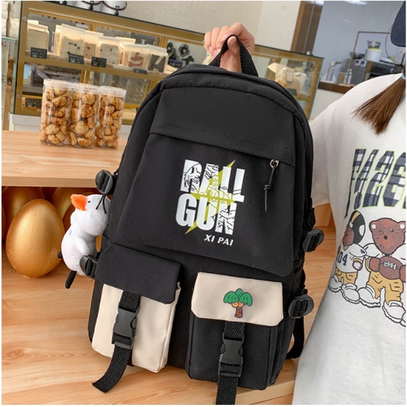 Mochila feminina grande Nylon impermeável escolar faculdade Com Pingente ursinho