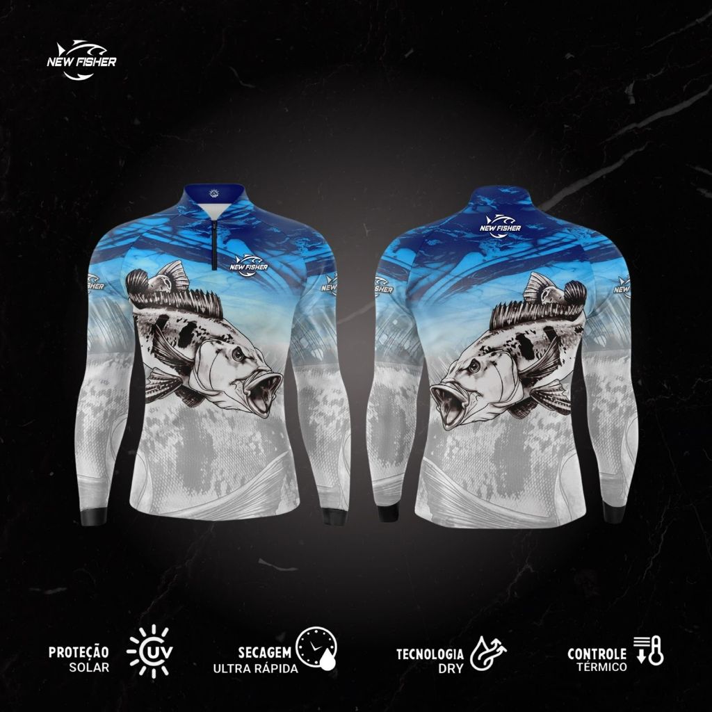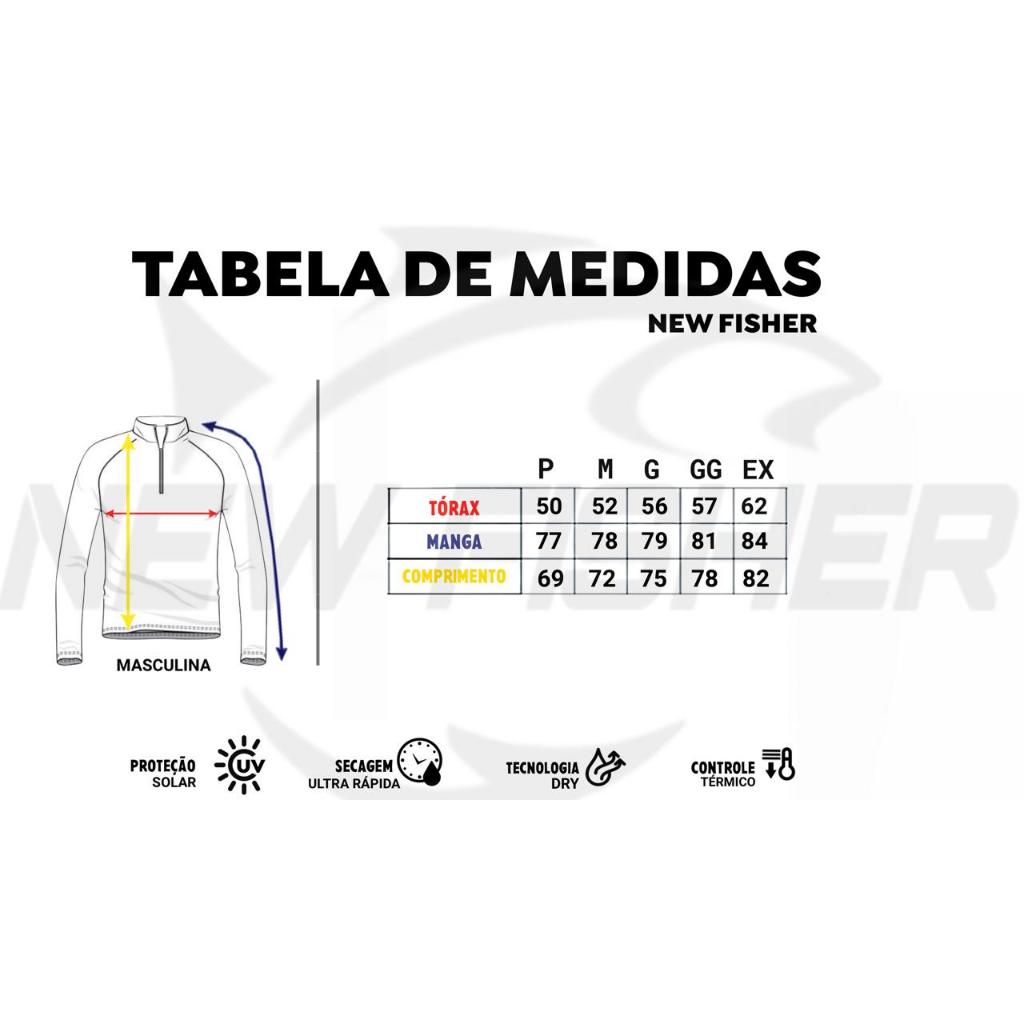 Camisa Camiseta de Pesca Tucunaré Gola Zíper Proteção Solar UV New Fisher - NF01