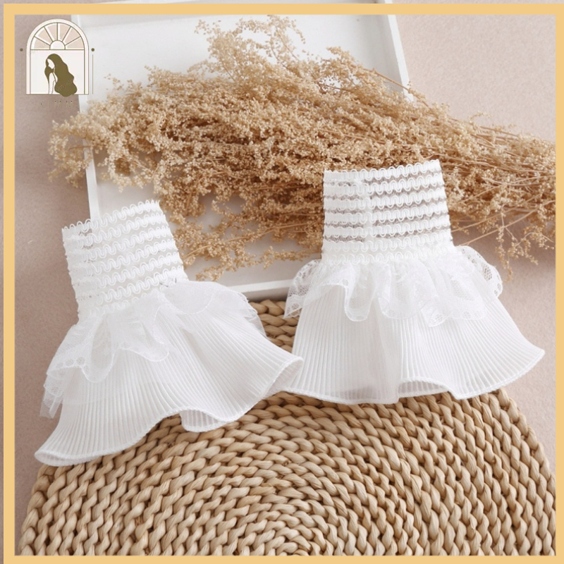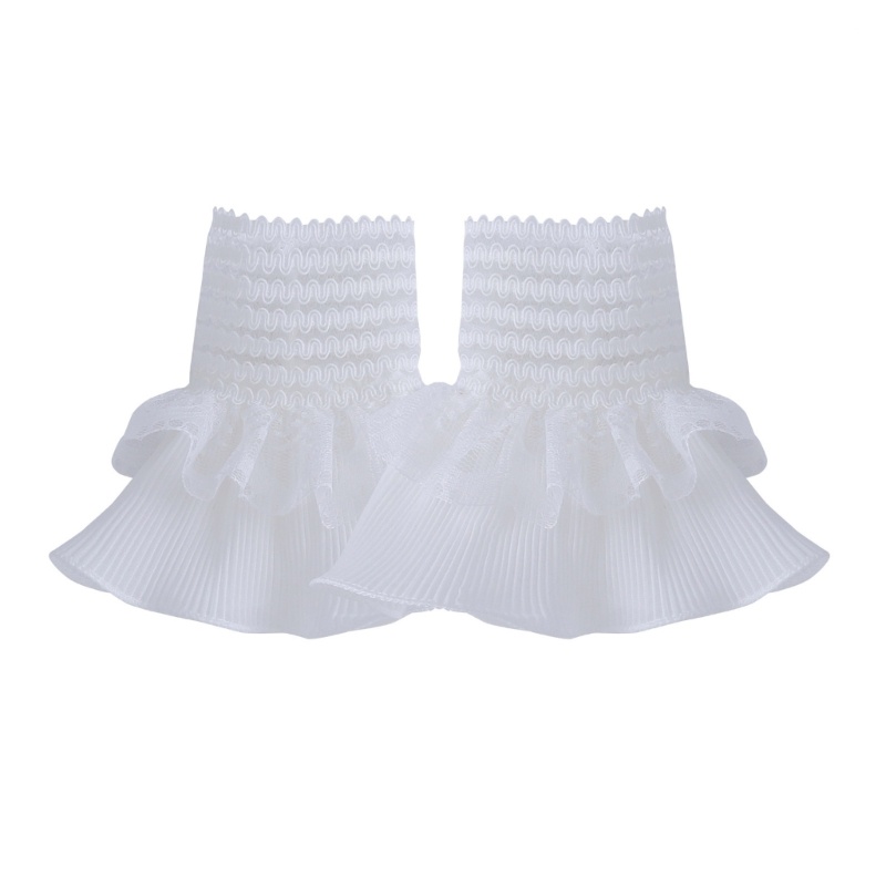 * XIMM * Mangas Ruffle Falsas Flare Plissadas Para Suéter Aquecedor Pulso Feminino Punhos Buzina Branca Acessórios