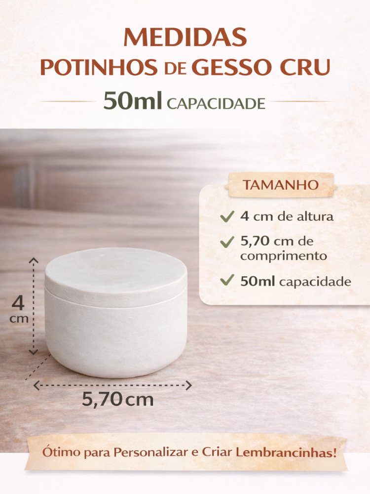 KIT Pote de Gesso Cru com Tampa 50ml para Artesanato – 5 ou 10 Unidades