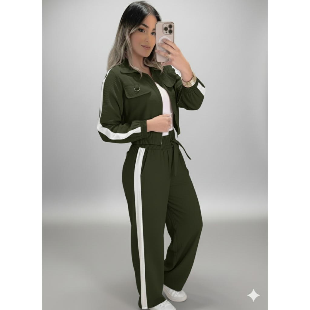 O Conjunto Alfaiataria Feminino Calça E Cropped Blusa Social M, G e GG