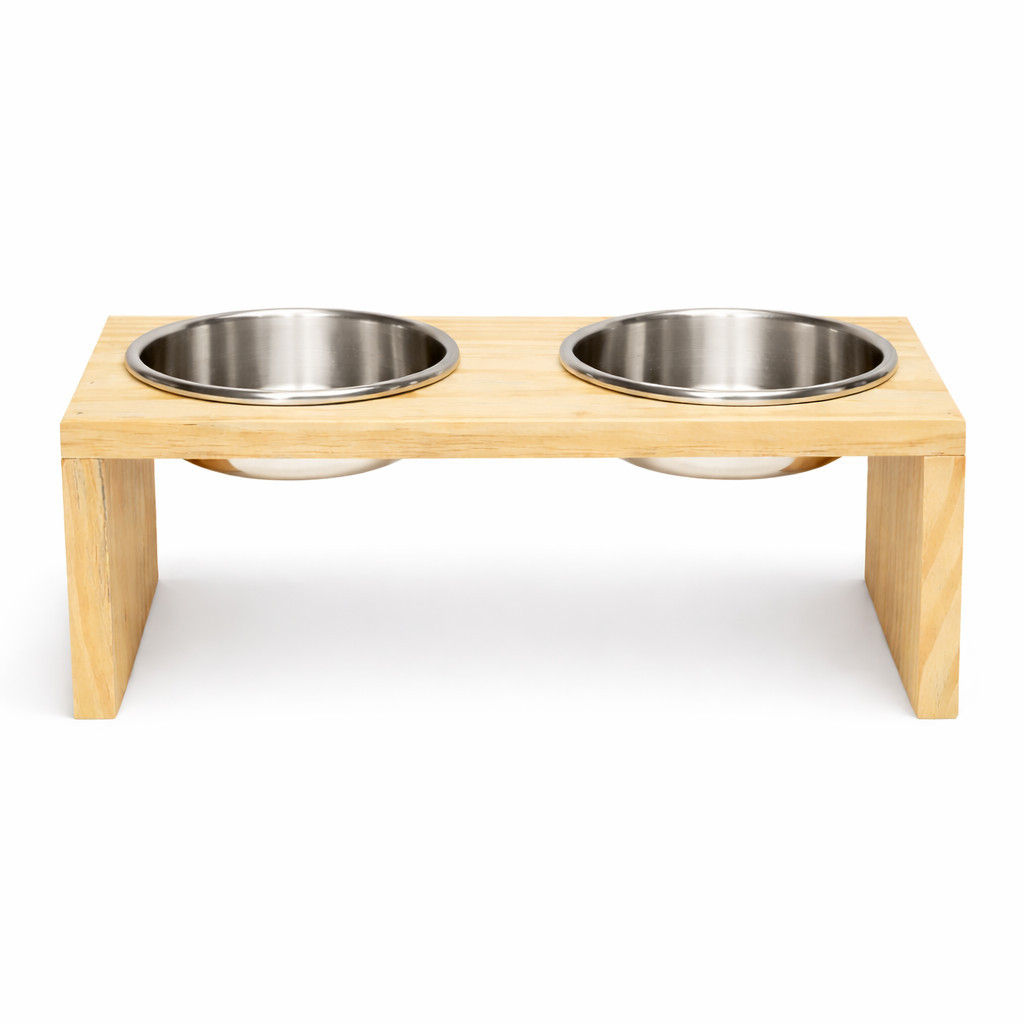 Comedouro Elevado Ergonomico Duplo Pinus Alumínio Pet Cães Luxo