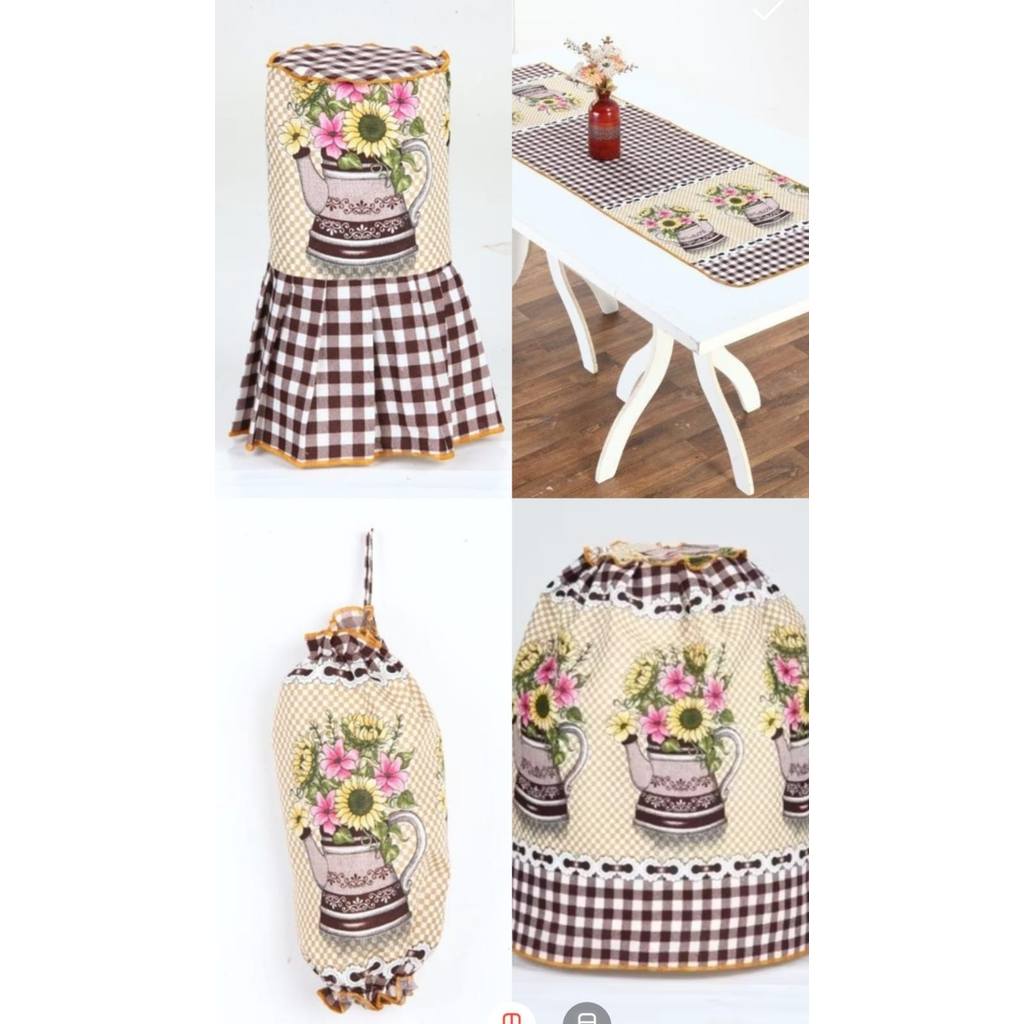 KIT DE COZINHA 4 PEÇAS ESTAMPA BULE XADREZ GIRASSOL