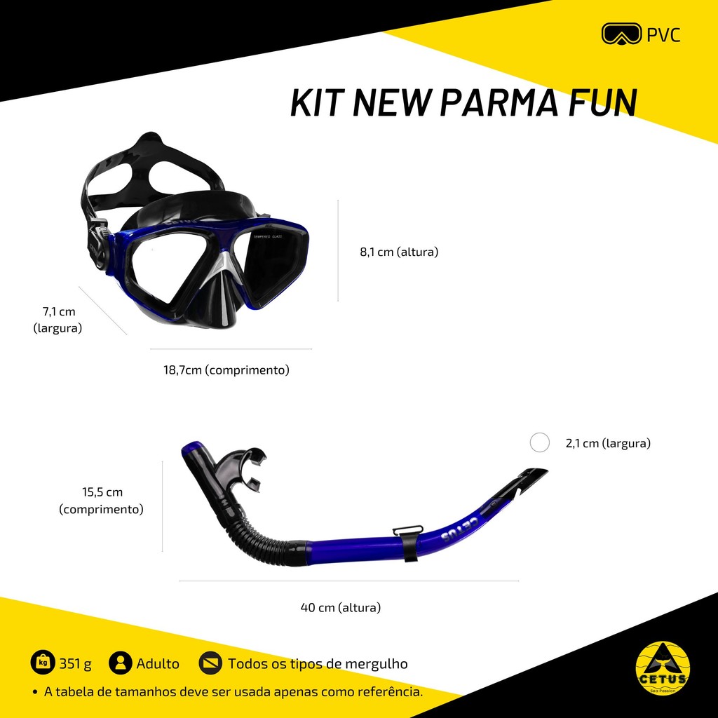 Kit de Mergulho Máscara+Respirador Cetus New Parma Fun