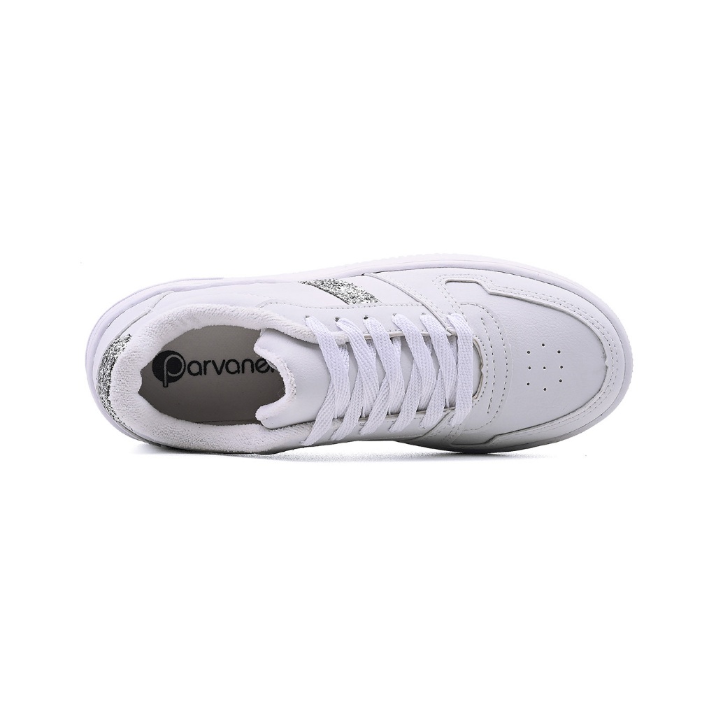 Tênis Parvaneh Feminino Casual Branco Glitter Prata