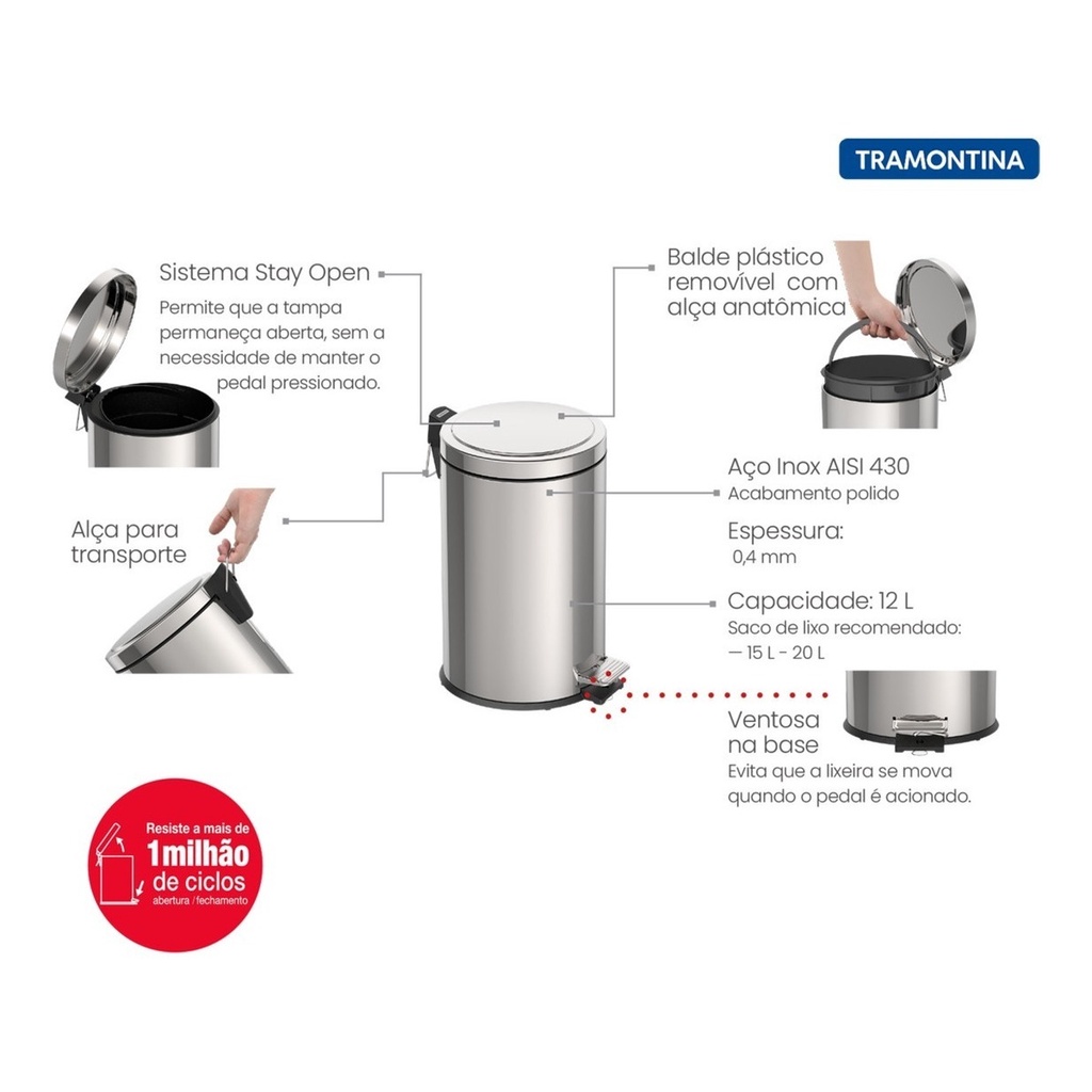 Lixeira Inox Brasil Tramontina Com Pedal E Balde Brasil 12 Litros