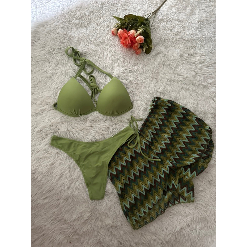 biquini com shorts 3 peças triquini conjunto 3 peças P M G GG moda praia