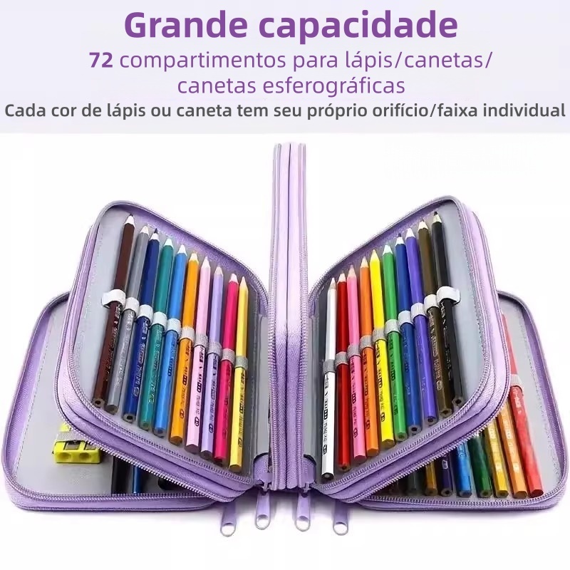 Estojo Box Grande Escolar Com 72 Compartimentos Com Alça