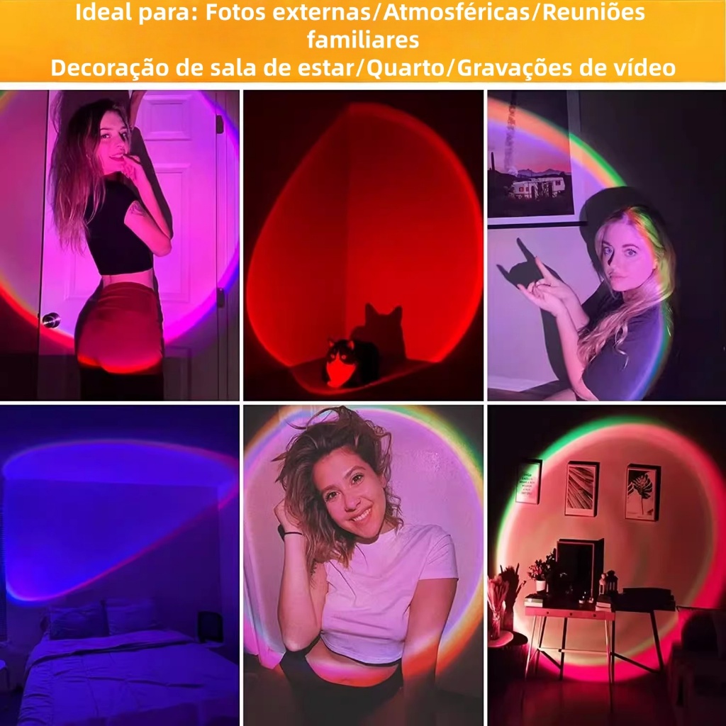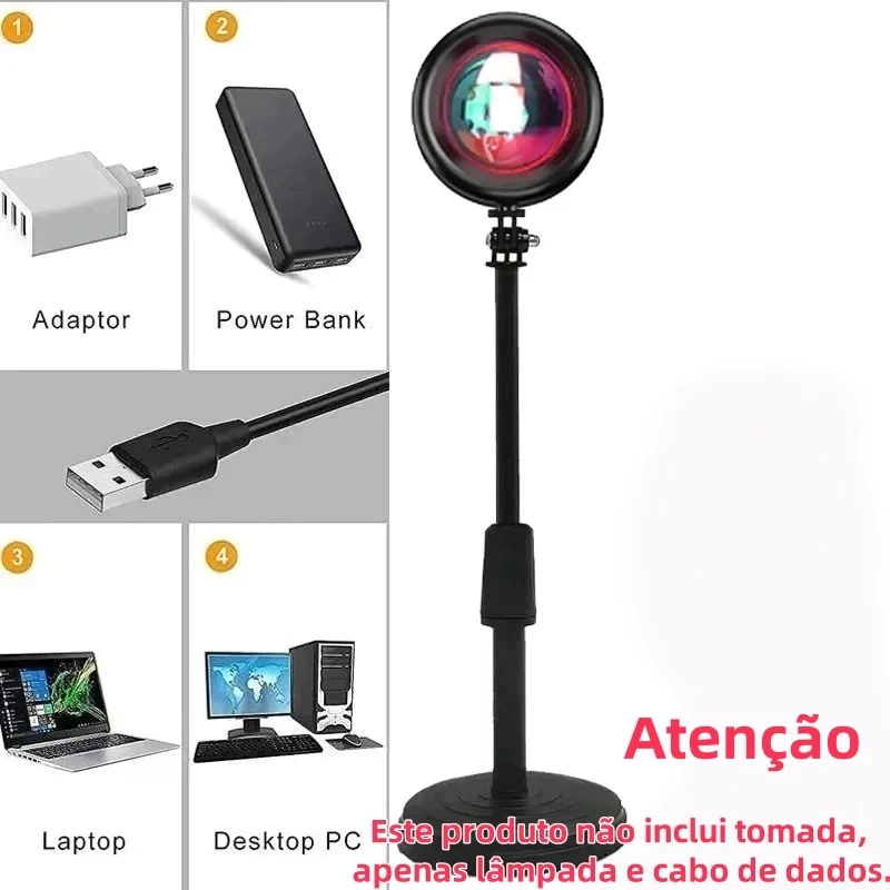 Luminária Por Do Sol Luz Noturna Projetor Led Sunset Casa Loja Fundo Decoração Colorida Atmosfera