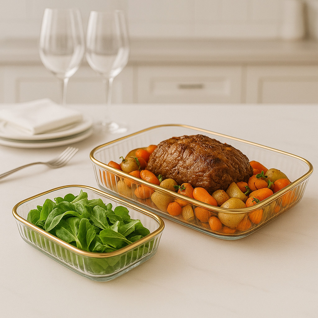 Bandeja de Acrilico com Borda Dourada Redonda ou Retangular | Individual ou Kit 2 Peças