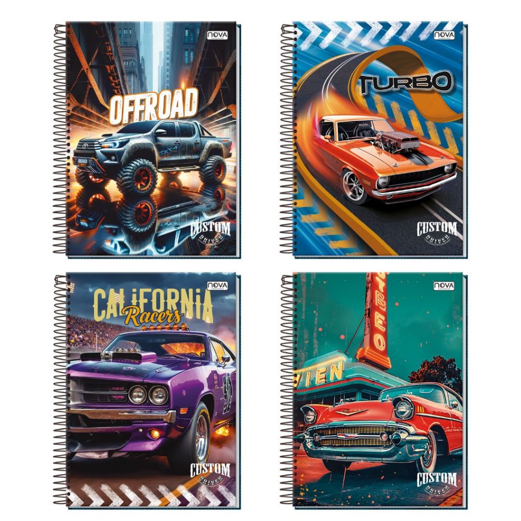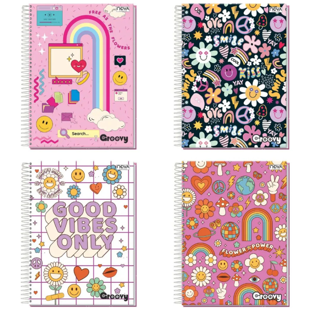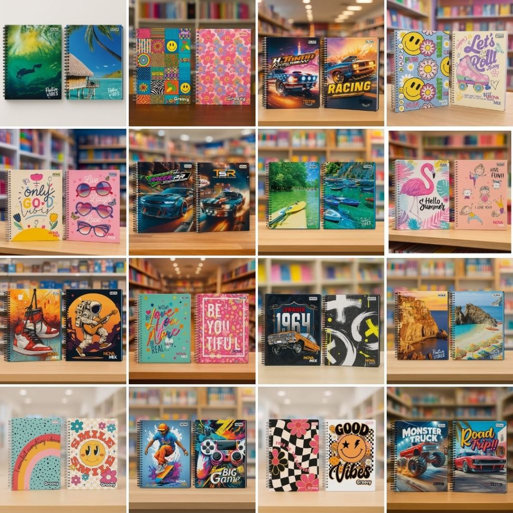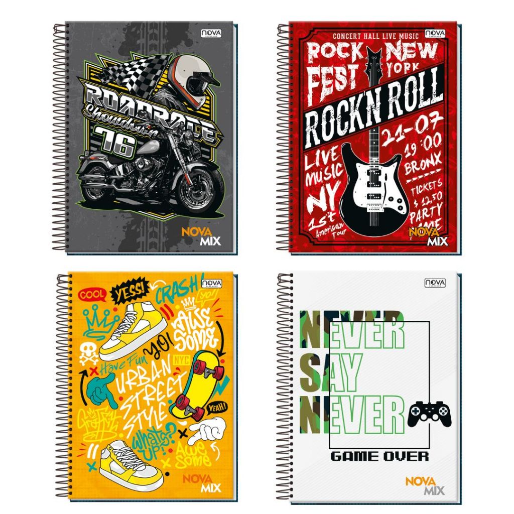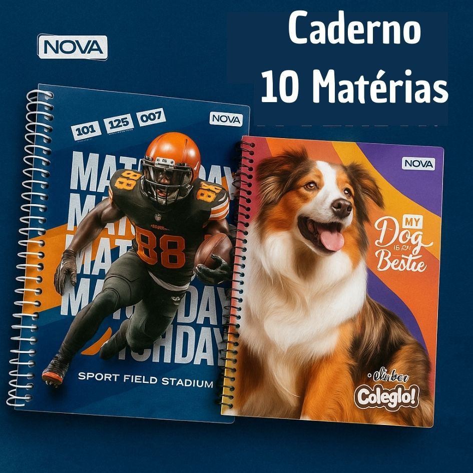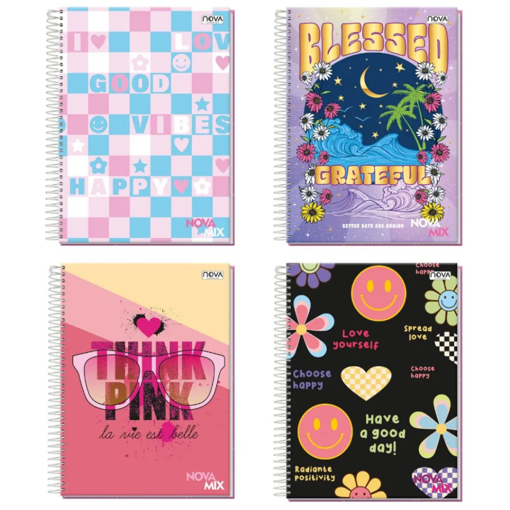Pacote com 4 Cadernos de 10 Matérias Capa Dura 160 Folhas Feminino ou Masculino Nova Mix Sortido Capa Sortida