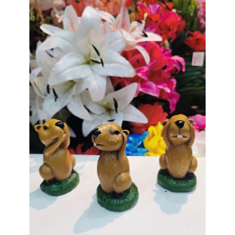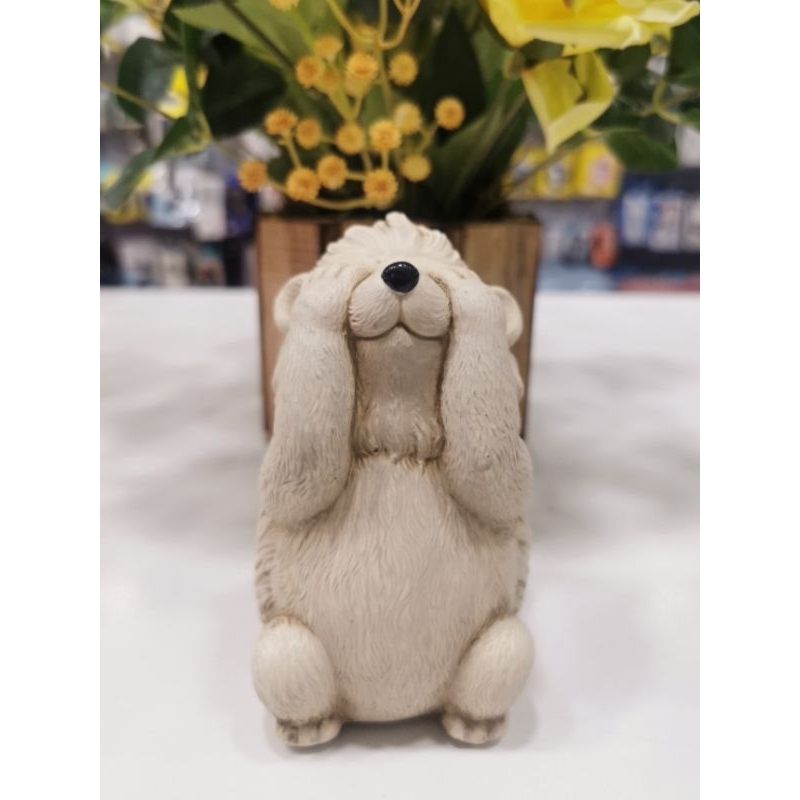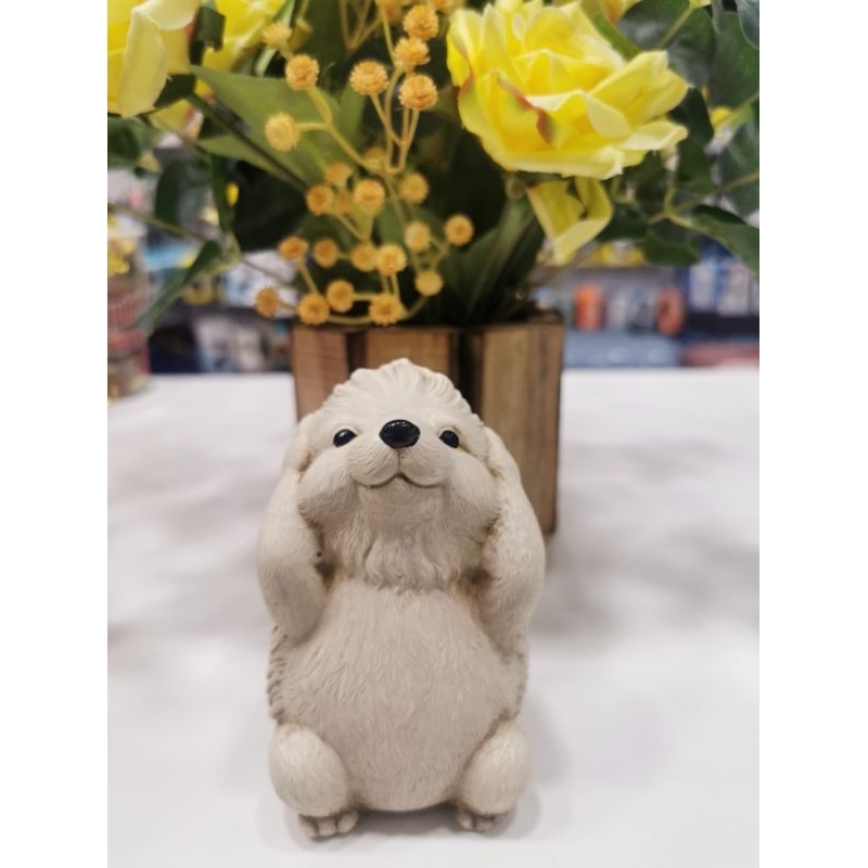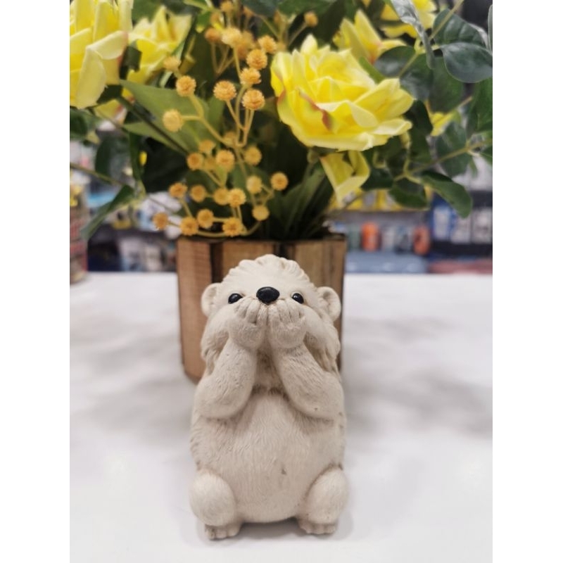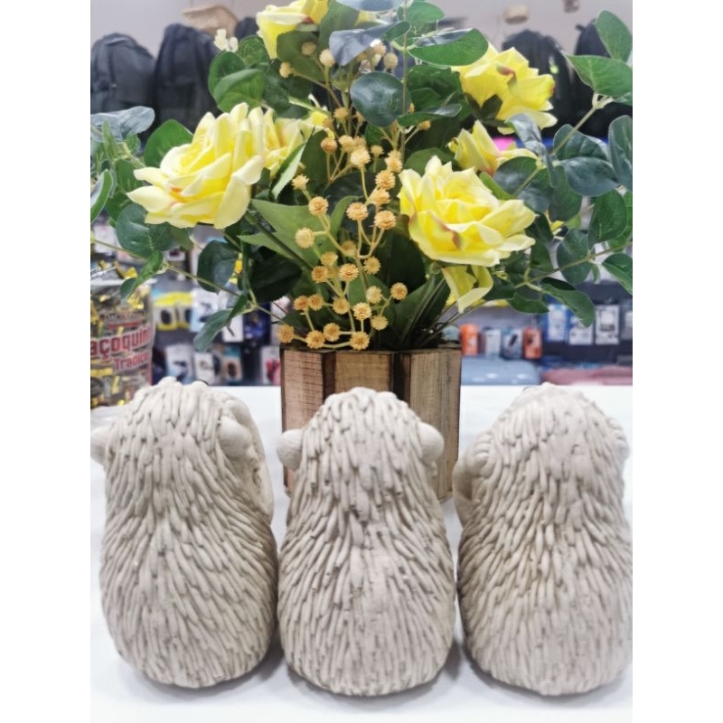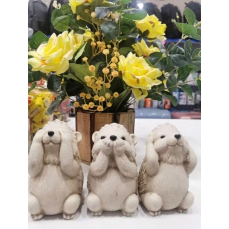 KIT Estatueta Trio Sabedoria Ouriço Decoração Gesso(Não ouça, Não veja, Não fale)