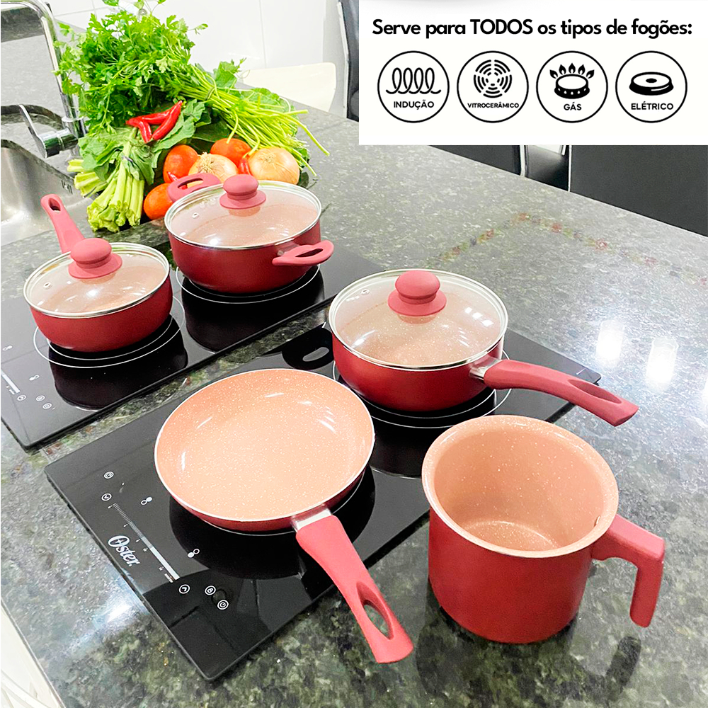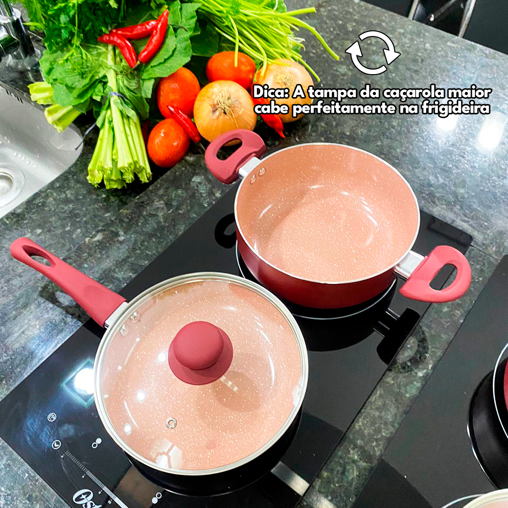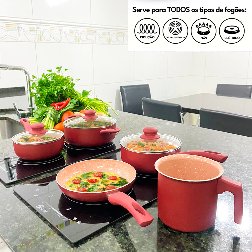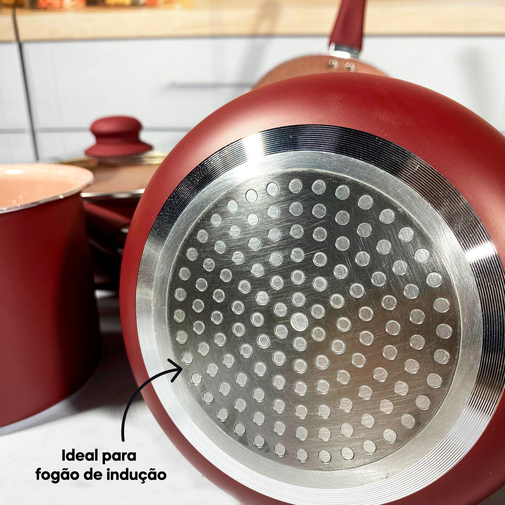 Jogo de Panela 5pçs Fundo Triplo de Indução Fascino Vermelho