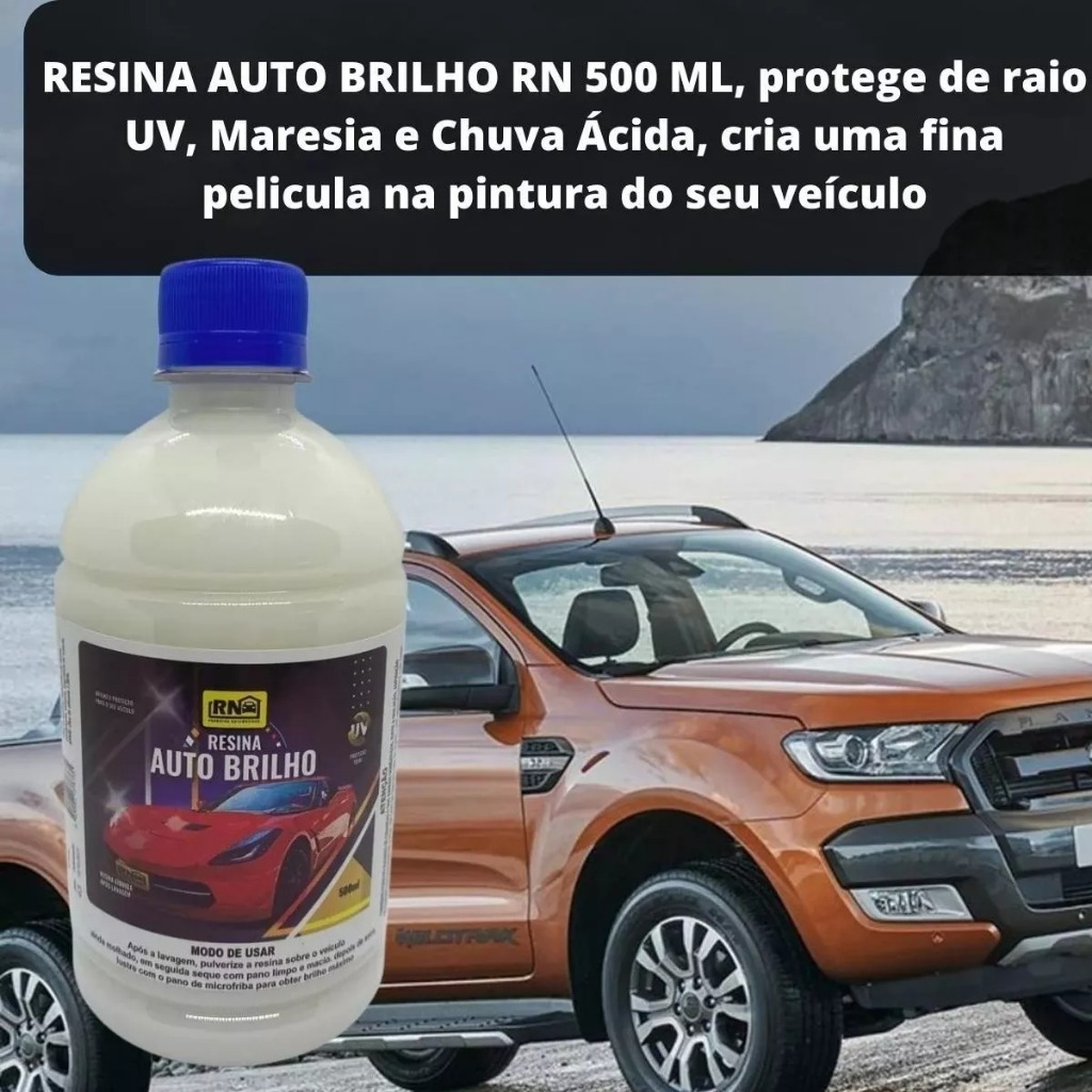 Kit 2 Cera Liquida Automotiva Carnaúba Brilho Intenso Proteção Uv Rn 500ml