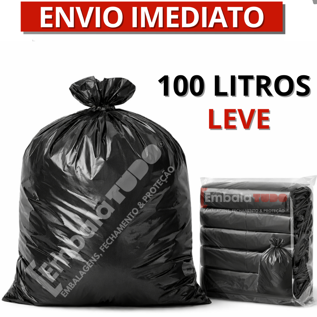 Saco para Lixo Leve Preto Vários Tamanhos pacote Com 100 Unidades
